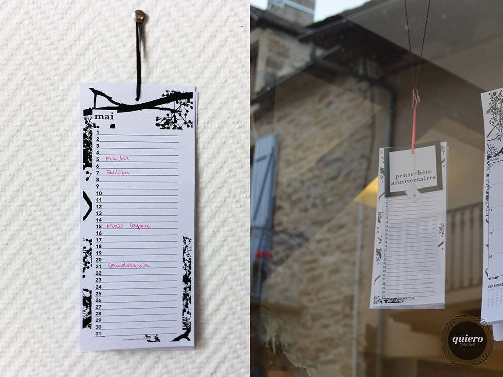Pense-bête anniversaires // Calendrier perpétuel //