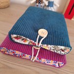 Elle est réalisée dans un tissu en velours côtelé pour l'extérieur, et un tissu 100% coton imprimé pour la doublure intérieure. Elle est également molletonnée pour une meilleure protection de vos livres.