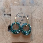 Dans son petit atelier, elle fabrique des boucles d'oreilles originales en résine décorée et en résine sur papier (afin de garantir une certaine rigidité et obtenir un rendu plus intense du papier) Tout ça en en Collections Limitées ...
