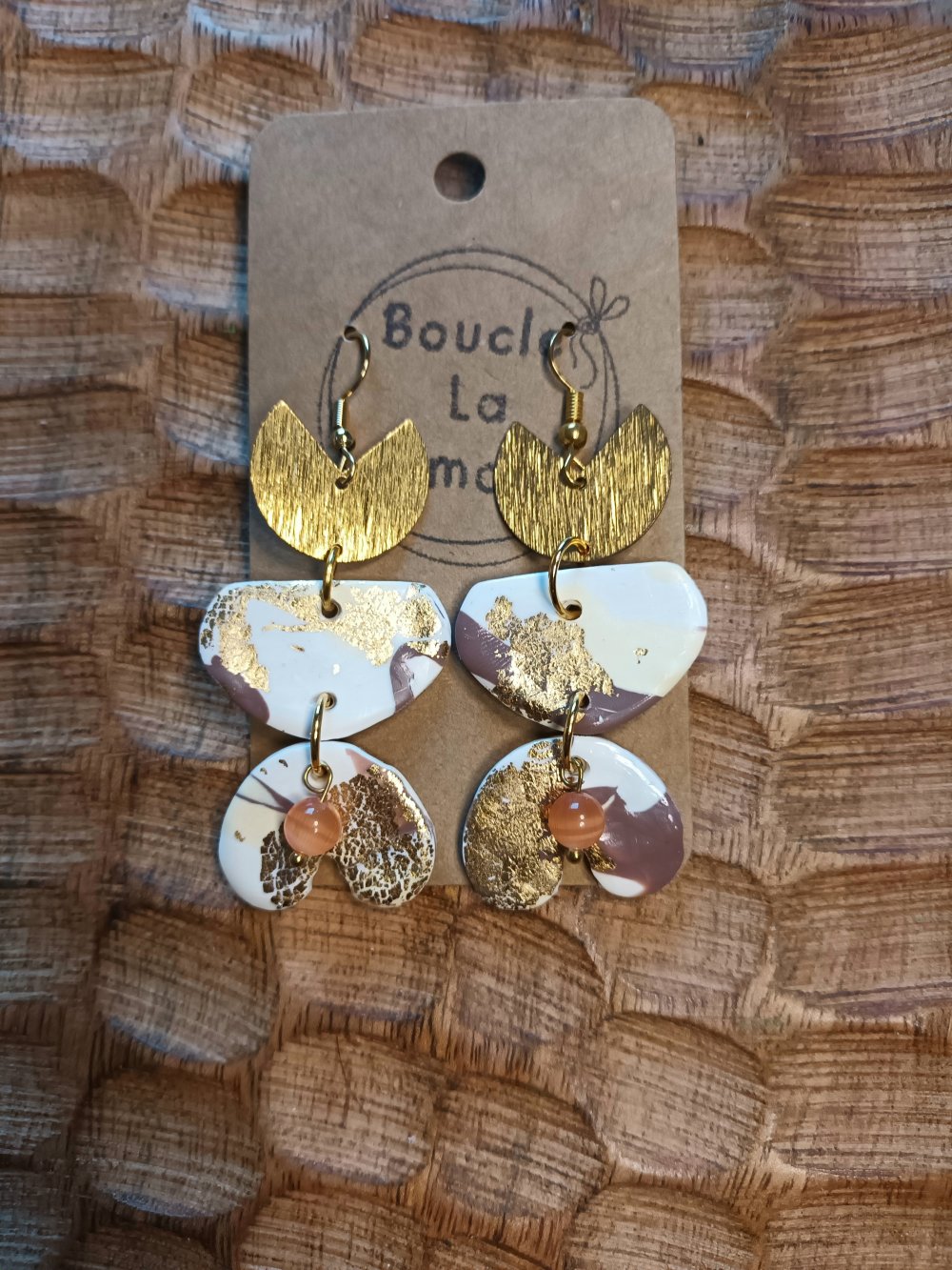 Dans mon petit atelier,, je fabrique des boucles d'oreilles originales à partir de résine sur papier en collection limitée.