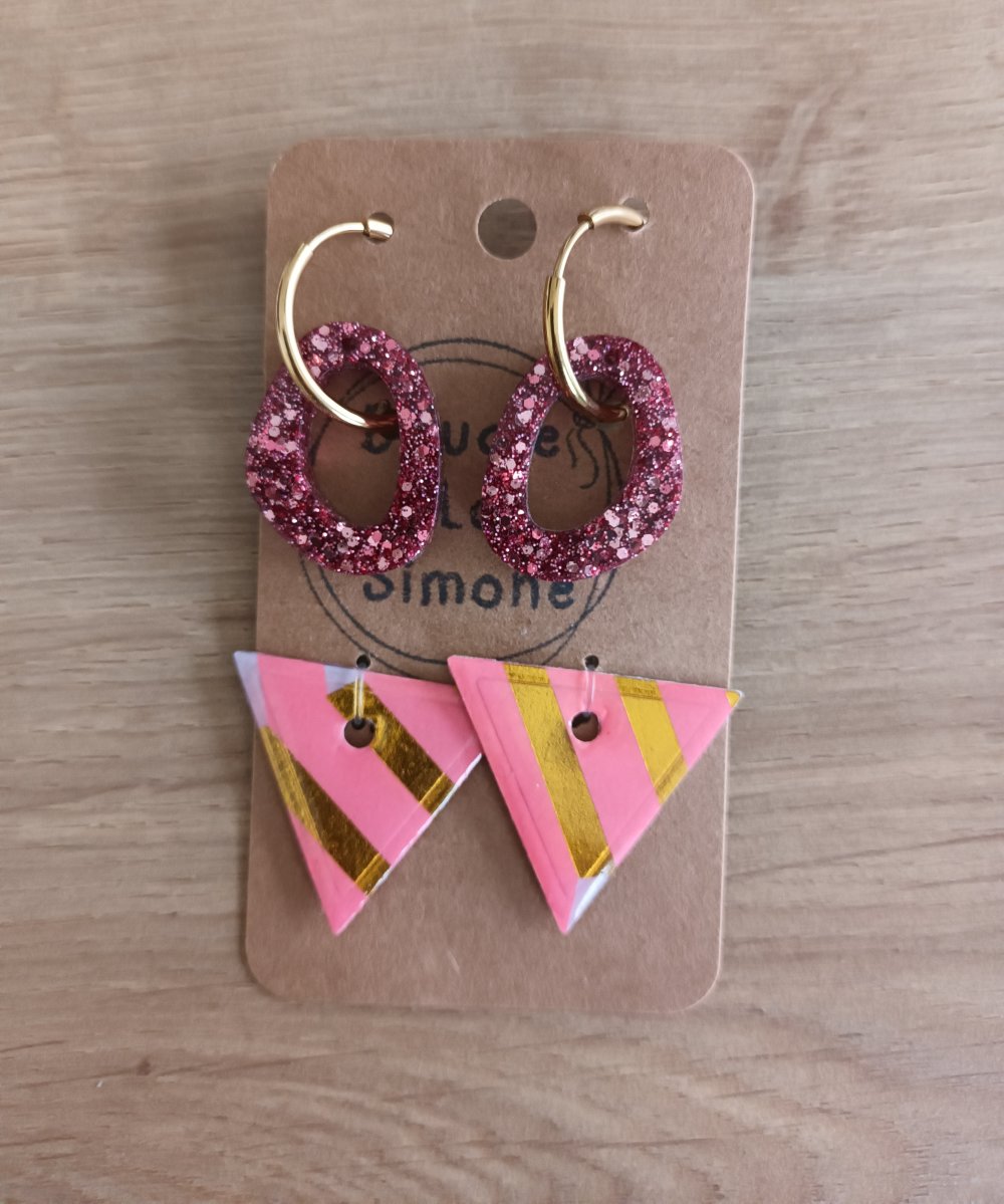 Dans son petit atelier, elle fabrique des boucles d'oreilles originales en résine décorée et en résine sur papier (afin de garantir une certaine rigidité et obtenir un rendu plus intense du papier) Tout ça en en Collections Limitées ...