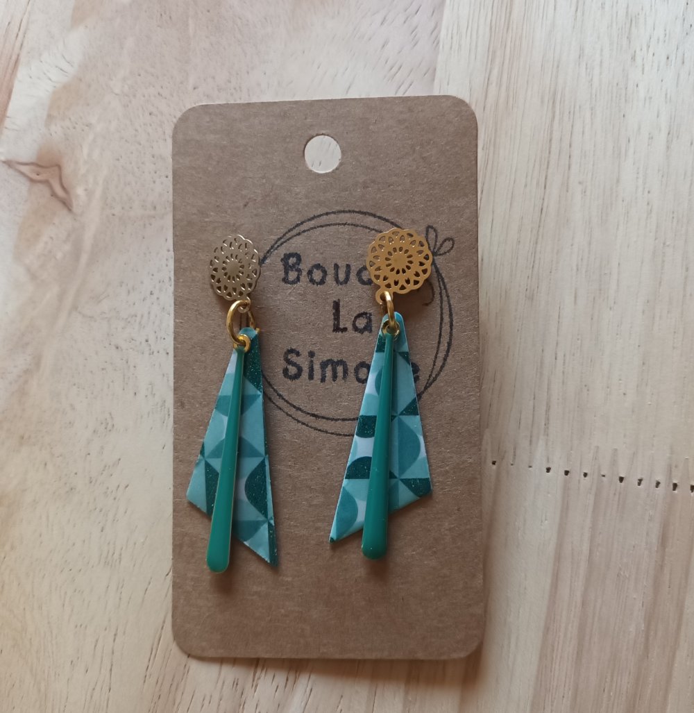 Dans mon petit atelier,, je fabrique des boucles d'oreilles originales à partir de résine sur papier en collection limitée.