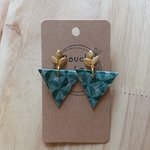 Dans mon petit atelier,, je fabrique des boucles d'oreilles originales à partir de résine sur papier en collection limitée.