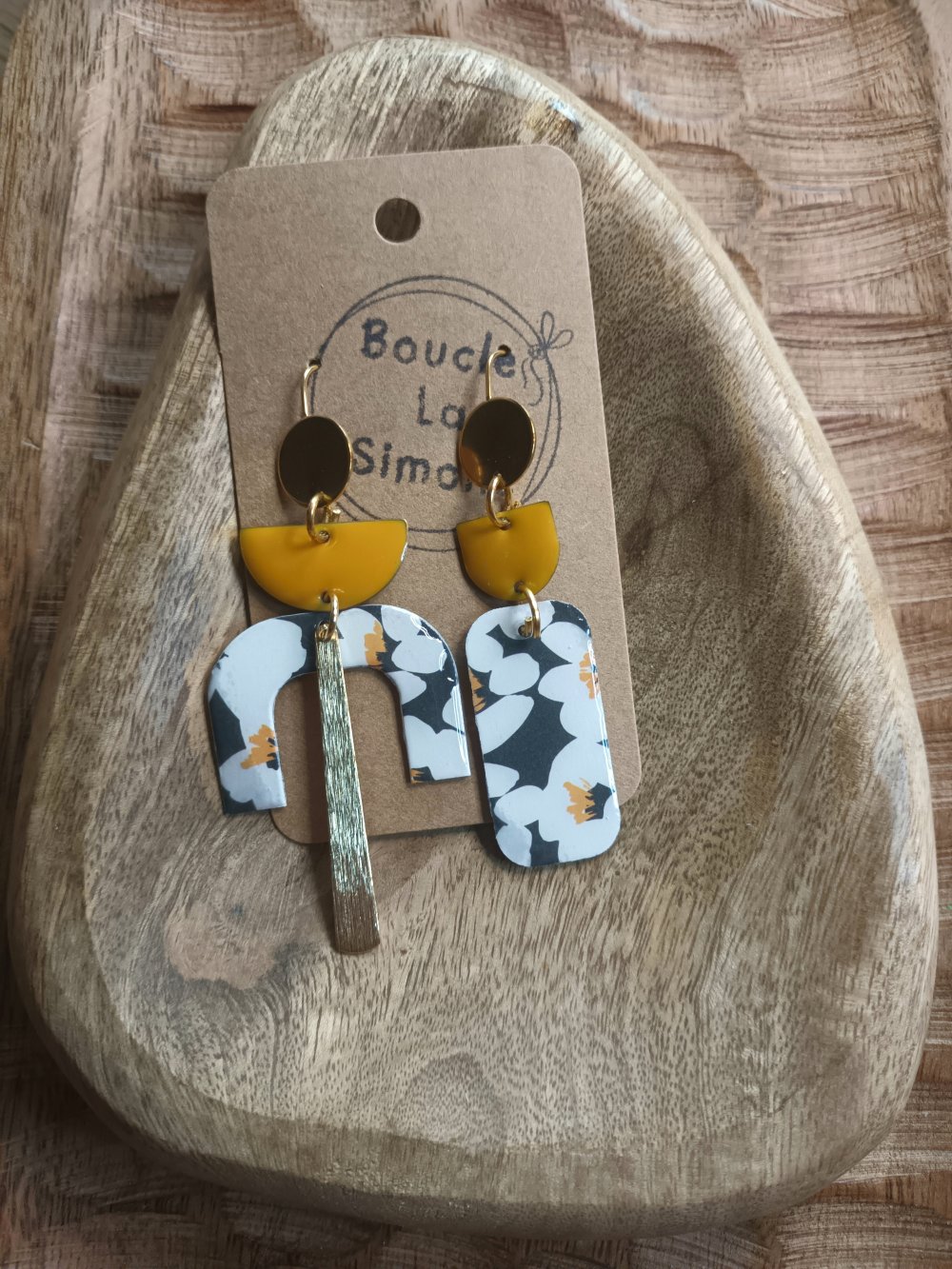 Dans mon petit atelier,, je fabrique des boucles d'oreilles originales à partir de résine sur papier en collection limitée.
