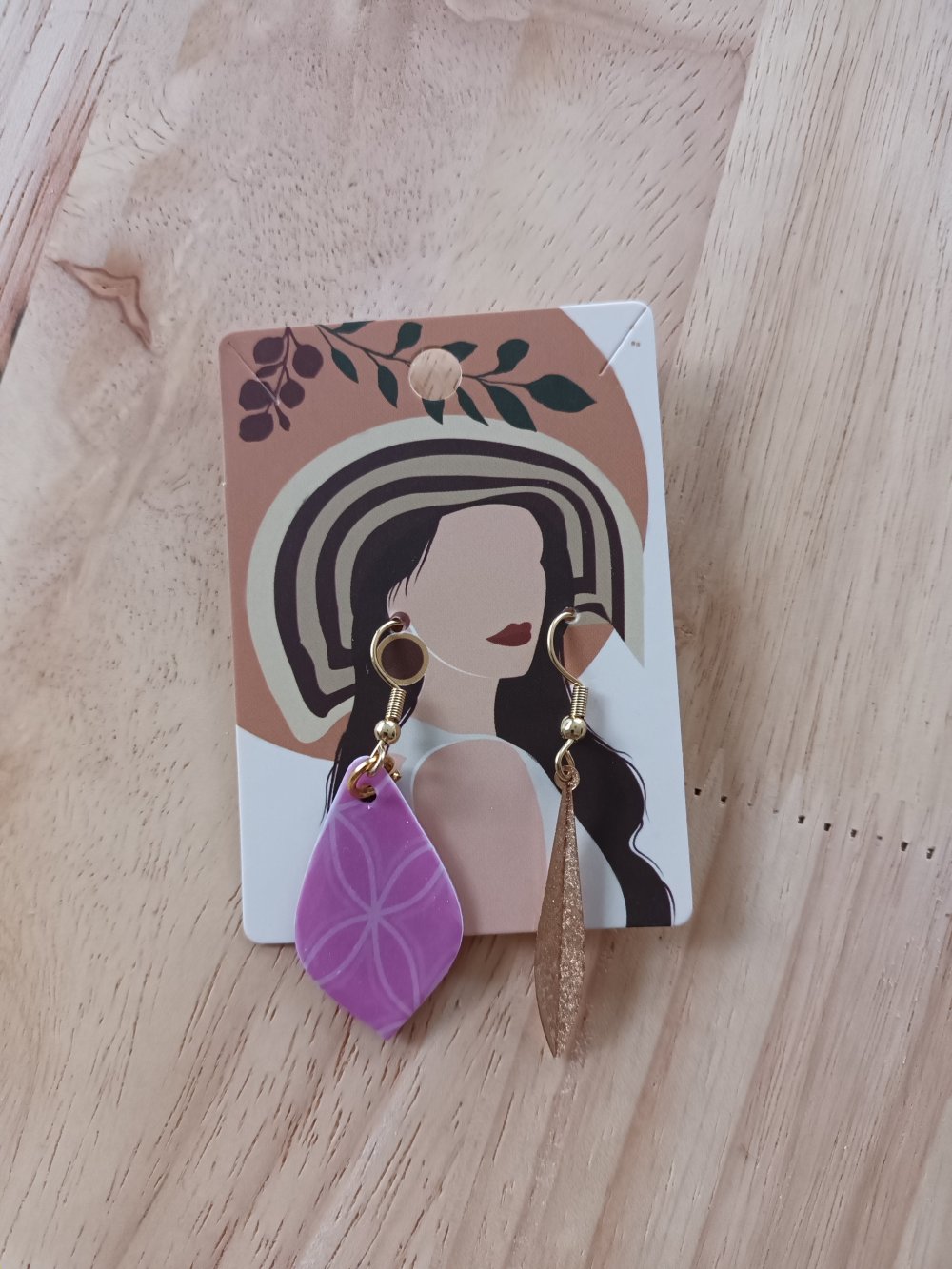 Dans mon petit atelier, je fabrique des boucles d'oreilles originales à partir de résine sur papier, en collection limitée.