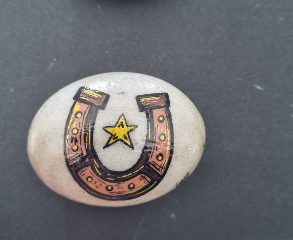 Joli galet fer à cheval original porte bonheur