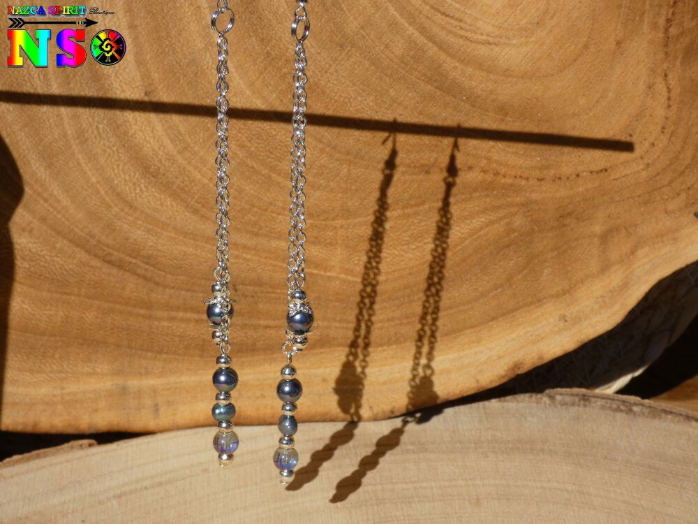 Particularité : crochets d'oreilles pour lobes en cuivre plaqué argent (traités hypoallergéniques)