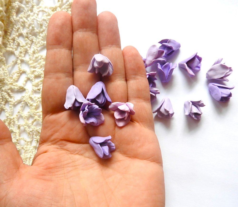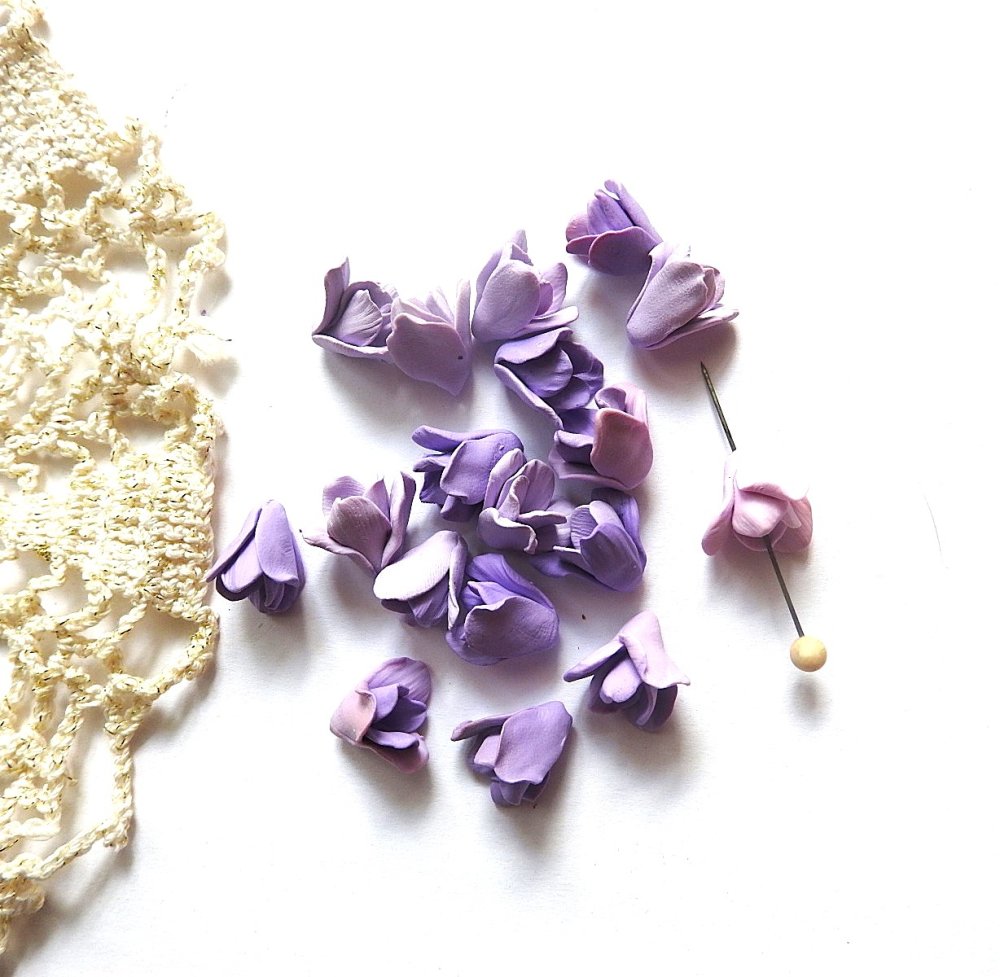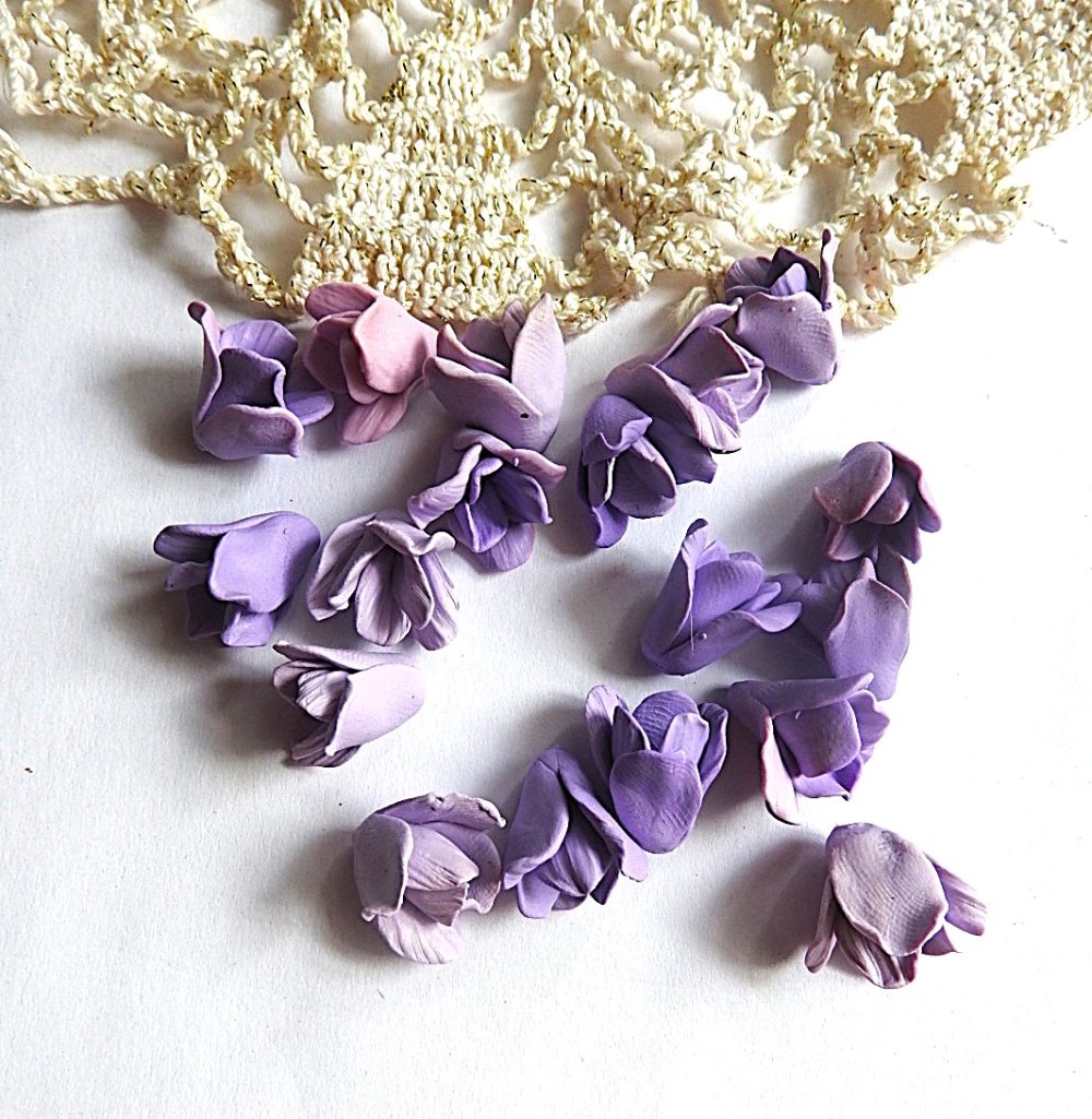 lot 18 fleurs violettes , les perles sont perséées, fimo, creation pour realiser bijoux florales