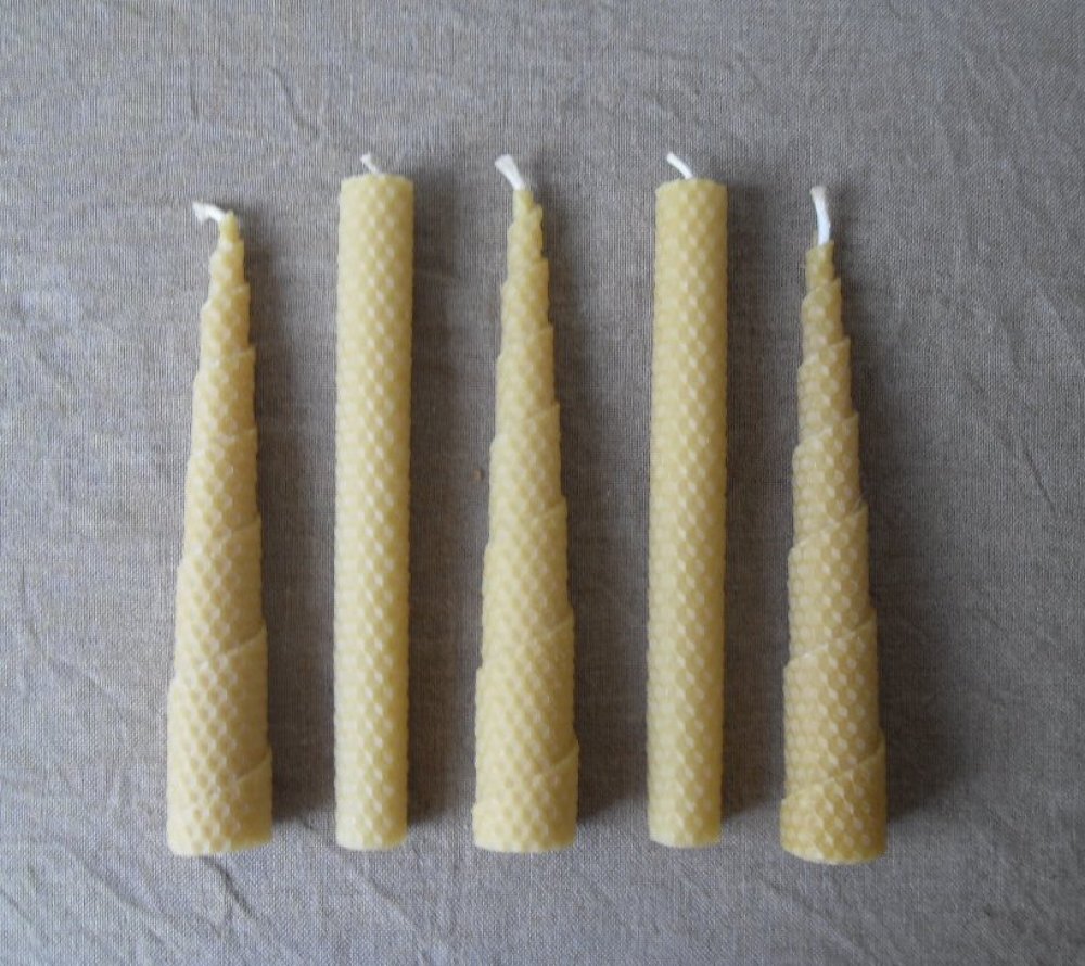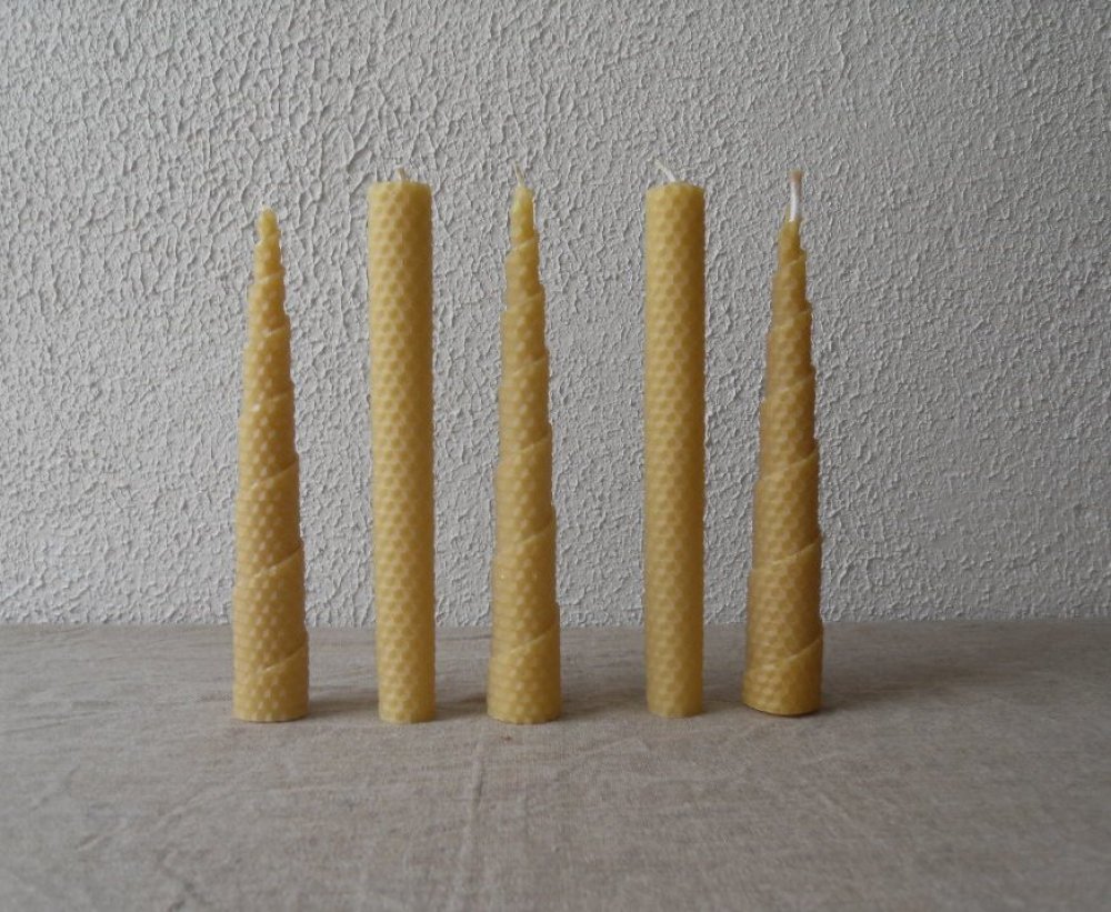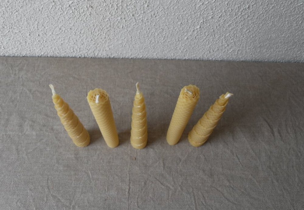 5 Bougies naturelles en pure cire d'Abeille gaufrées artisanales