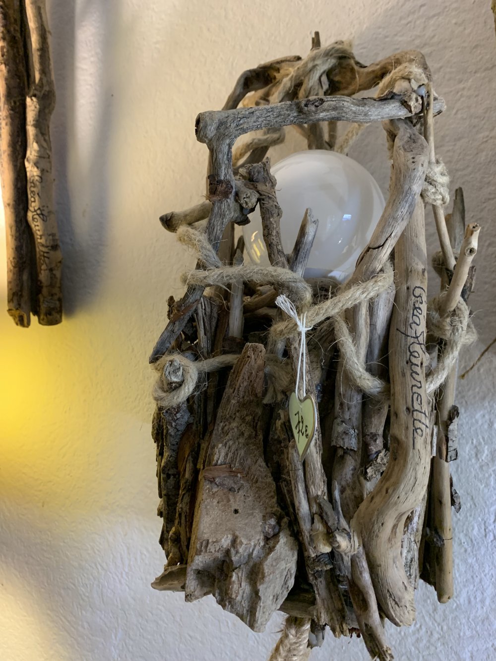 Applique murale en bois flotté, style lanterne. Lampe en bois flotté, esprit lanterne. Lampe à poser ou à accrocher. Ampoule fournie. Lampe naturelle et originale pour salon. Luminaire en bois flotté pour villa à la mer. Lampe esprit bord de mer. Décoration pour intérieur stylé. Déco d'intérieur chic et naturelle. Lampe pour bureau. Lampe pour chambre à coucher. Dimensions 38 cm x 25 cm. Idée cadeau pour Noël. Cadeau pour pendaison de crémaillère. Lampe pour déménagement. Création unique. Lampe écolo pour chalet de montagne. Lampe originale pour villa à la mer. Lampe zéro déchet pour maison de campagne. Fabrication artisanale. Luminaire made in France.