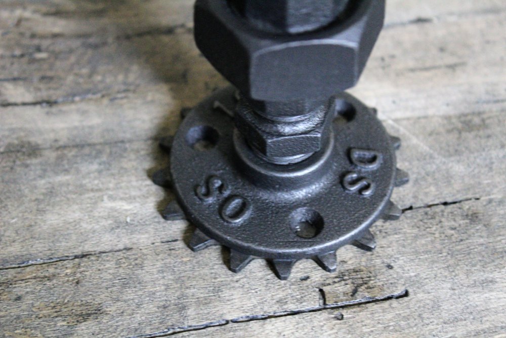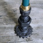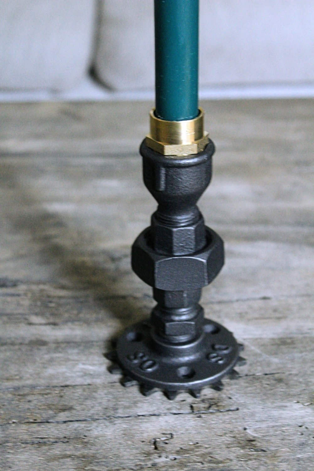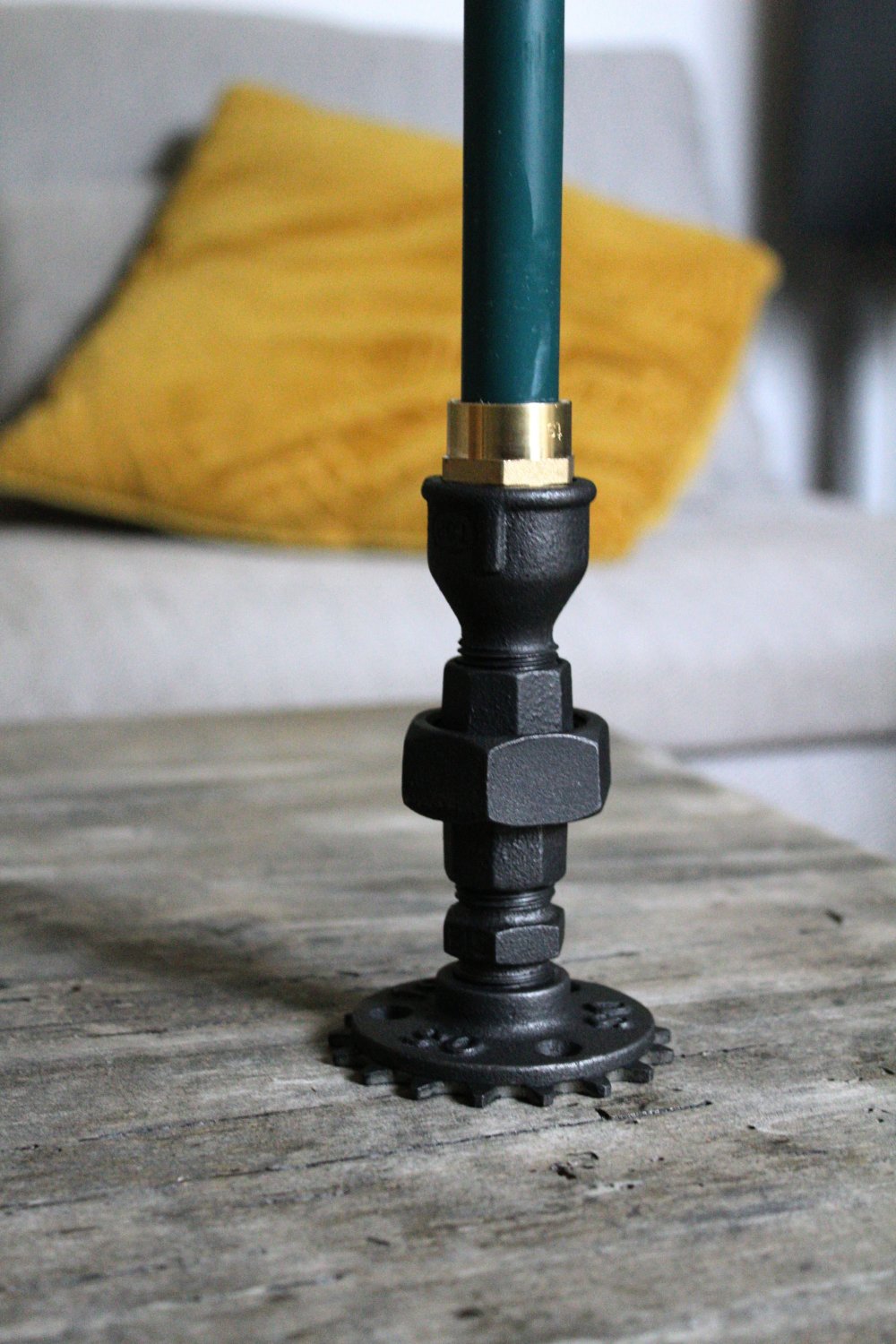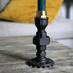 Le bougeoir déco est fabriqué dans mon atelier de Troyes, en France avec d'authentiques raccords de plomberie en fonte. Une roue d'engrenage mécanique est collé sous le bougeoir pour accentuer son style steampunk et industriel.
