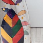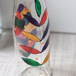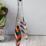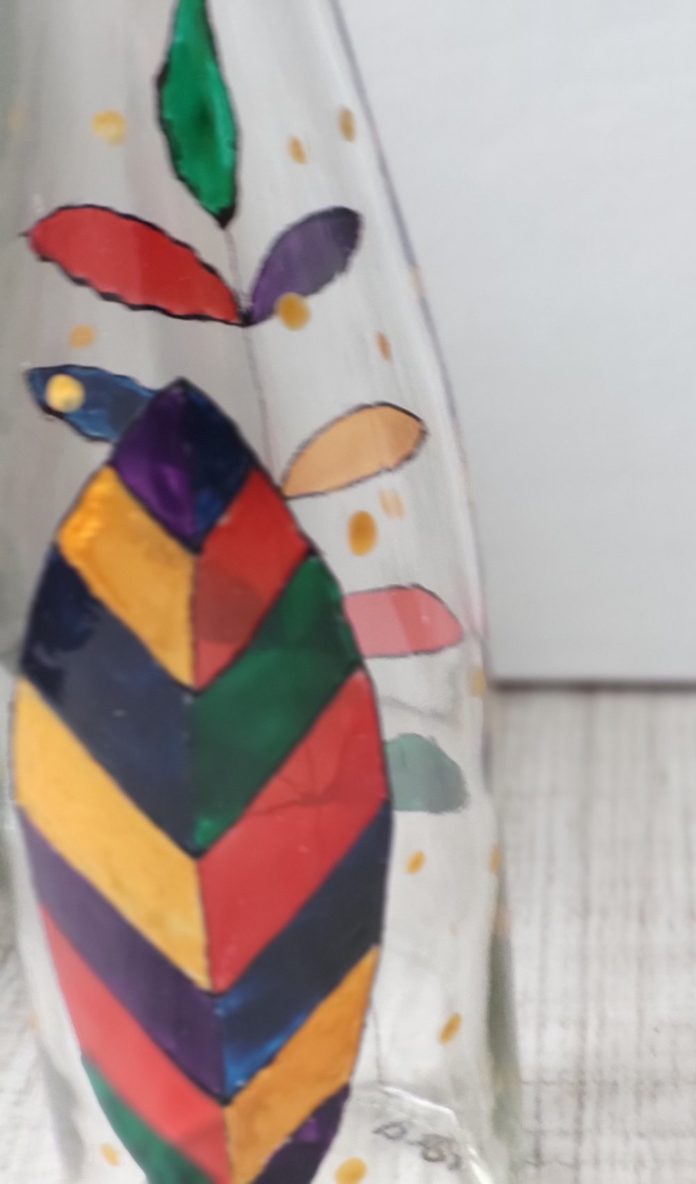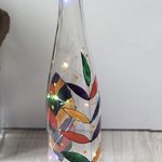 Bouteille en verre recyclée peinte d’un motif végétal façon vitrail à la peinture spéciale verre