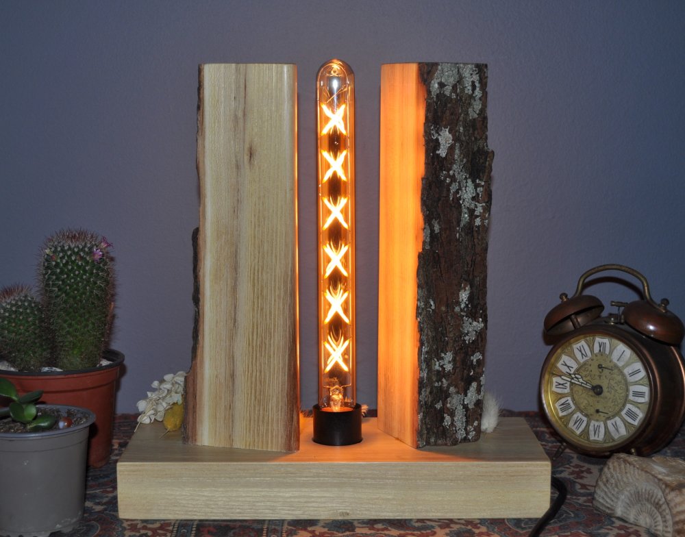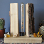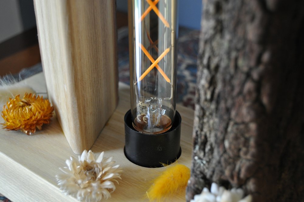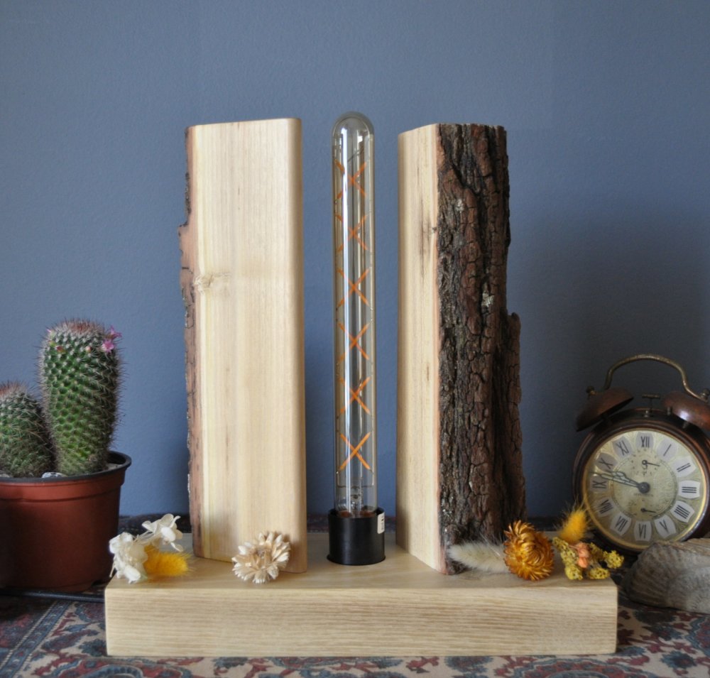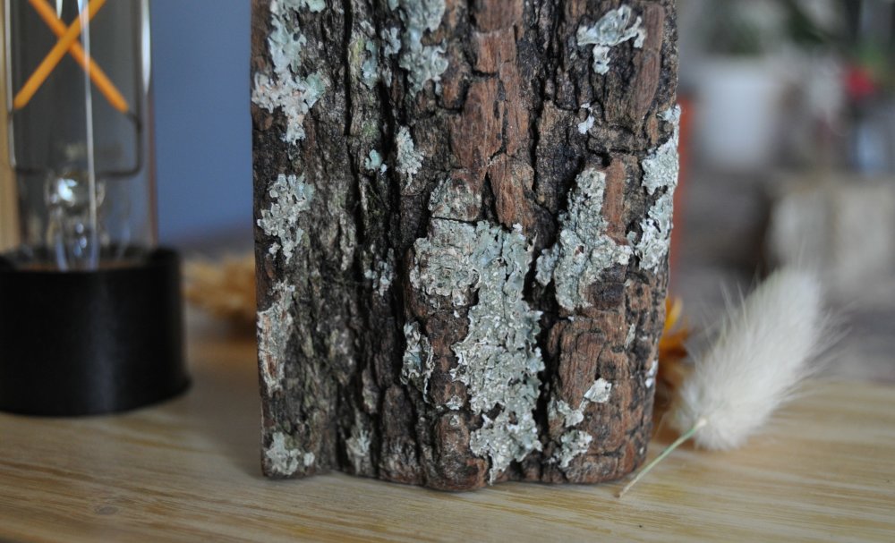 Cette lampe est ciré à la cire d'abeille naturelle, ce qui lui confère un aspect mat tout en faisant ressortir le veinage du bois. L'écorce est, quant à elle, traitée afin de garantir sa durabilité.