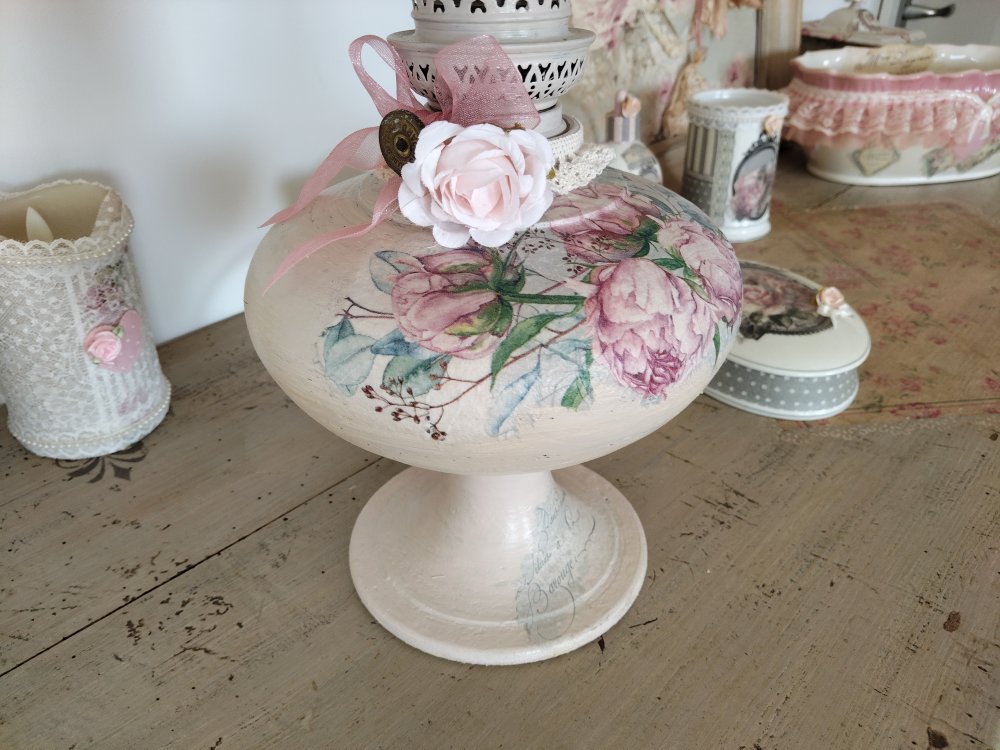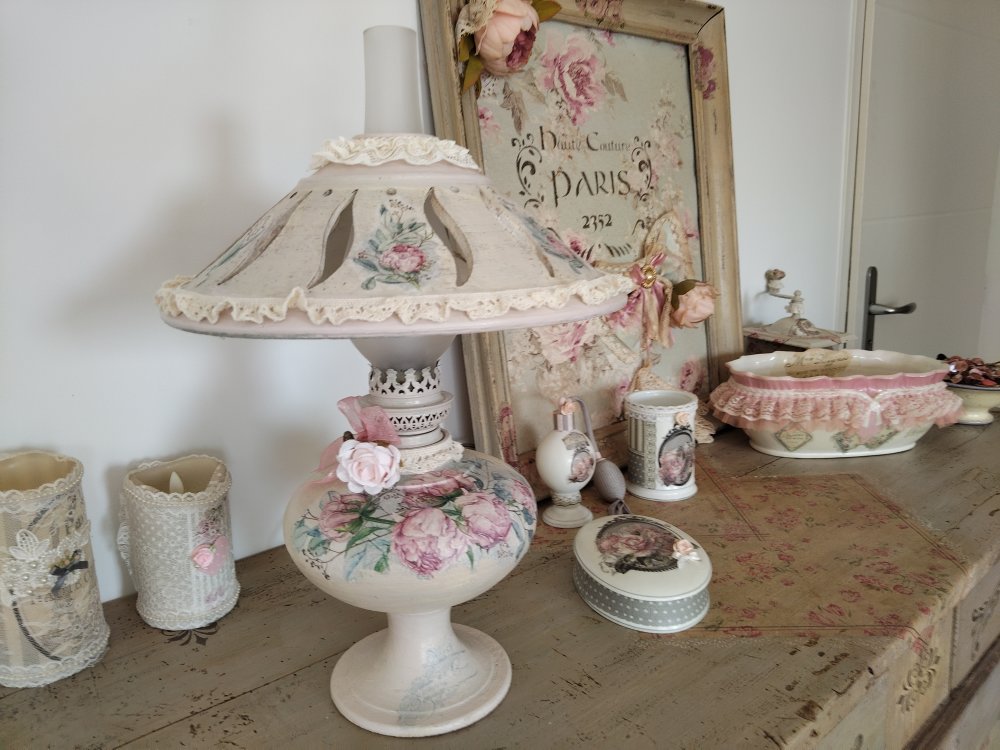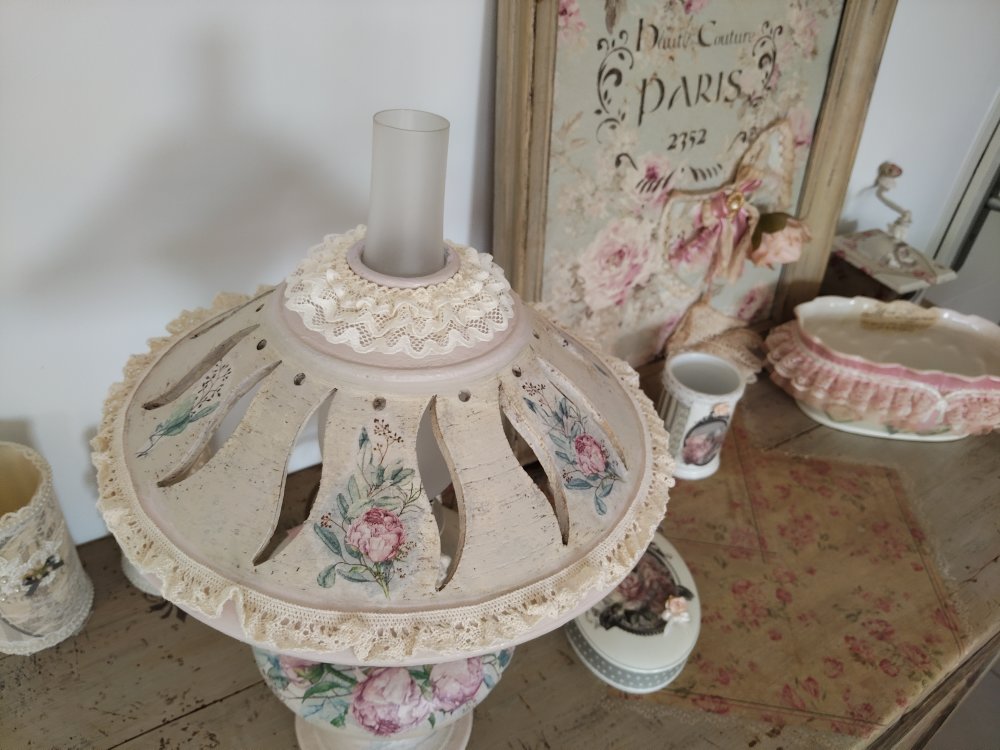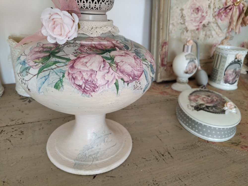 Lampe d'antan " Bouquet de pivoines " - Création - Au grenier cosy -