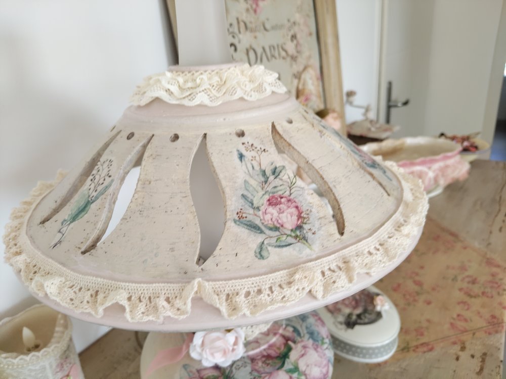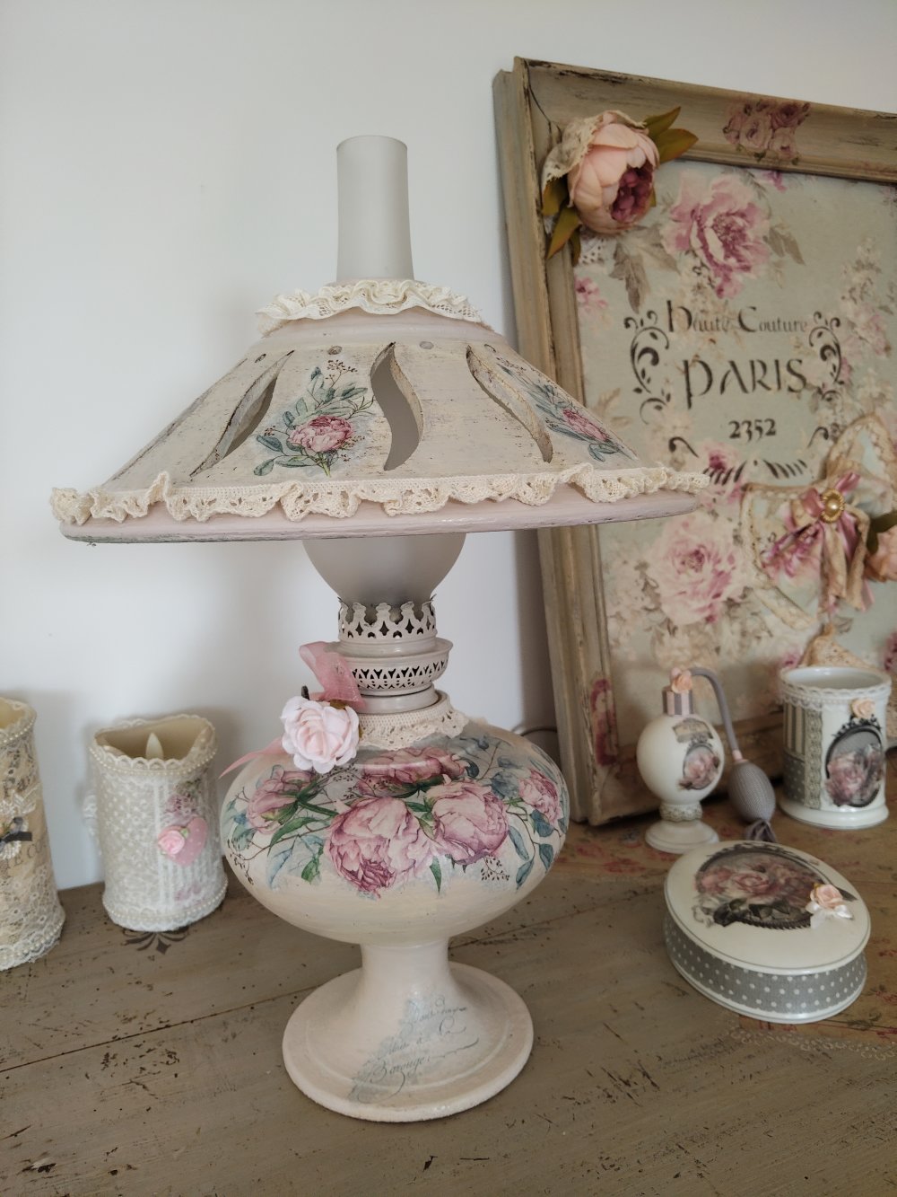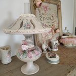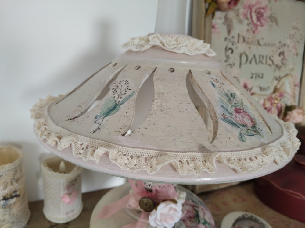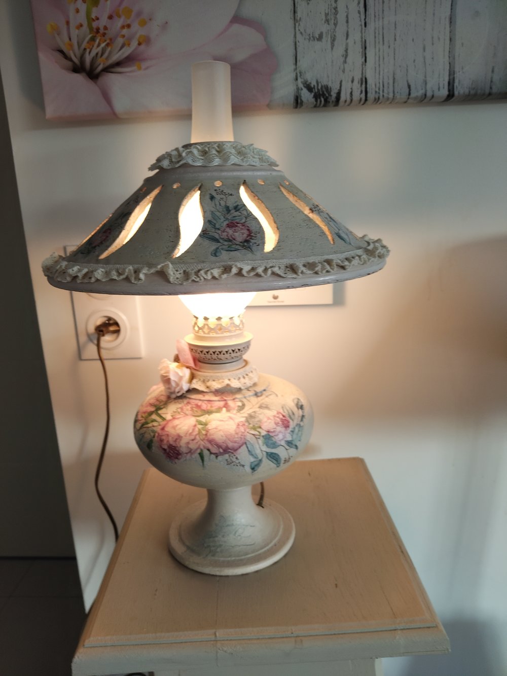Lampe d'antan " Bouquet de pivoines " - Création - Au grenier cosy -
