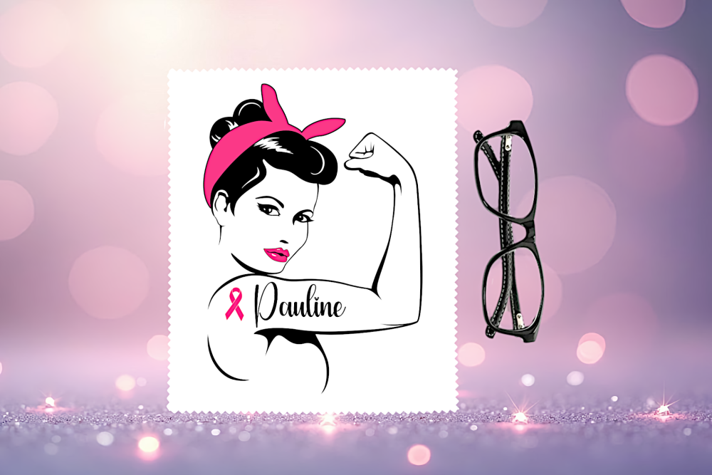 Montrez votre soutien à Octobre Rose avec un essuie lunettes personnalisé et plein de sens.