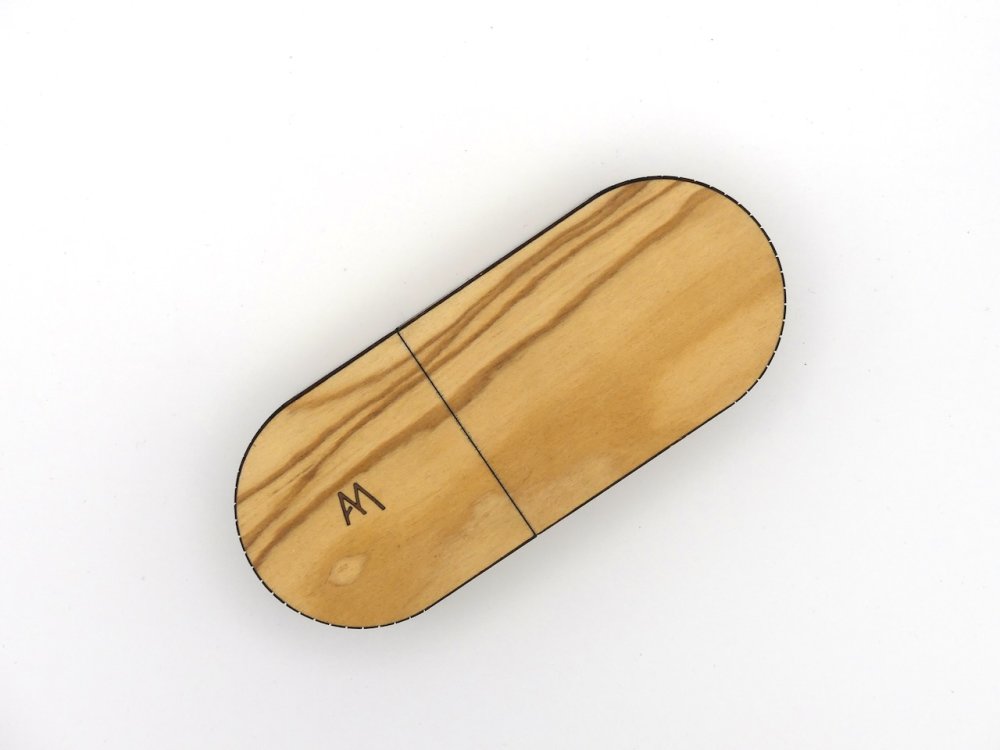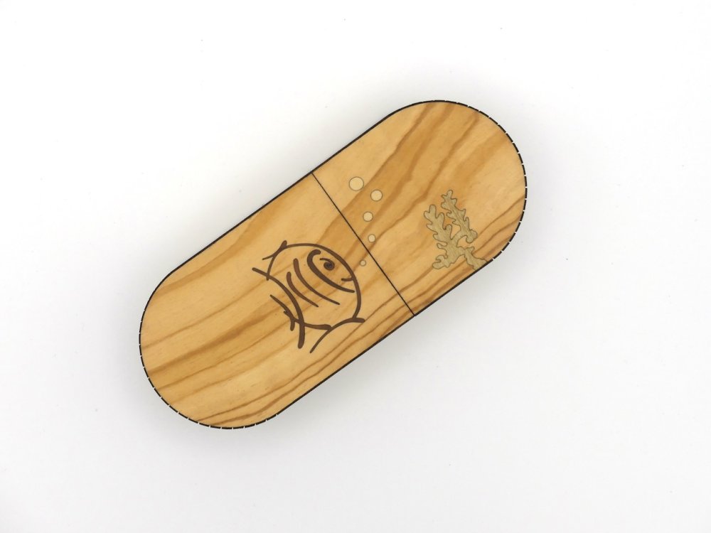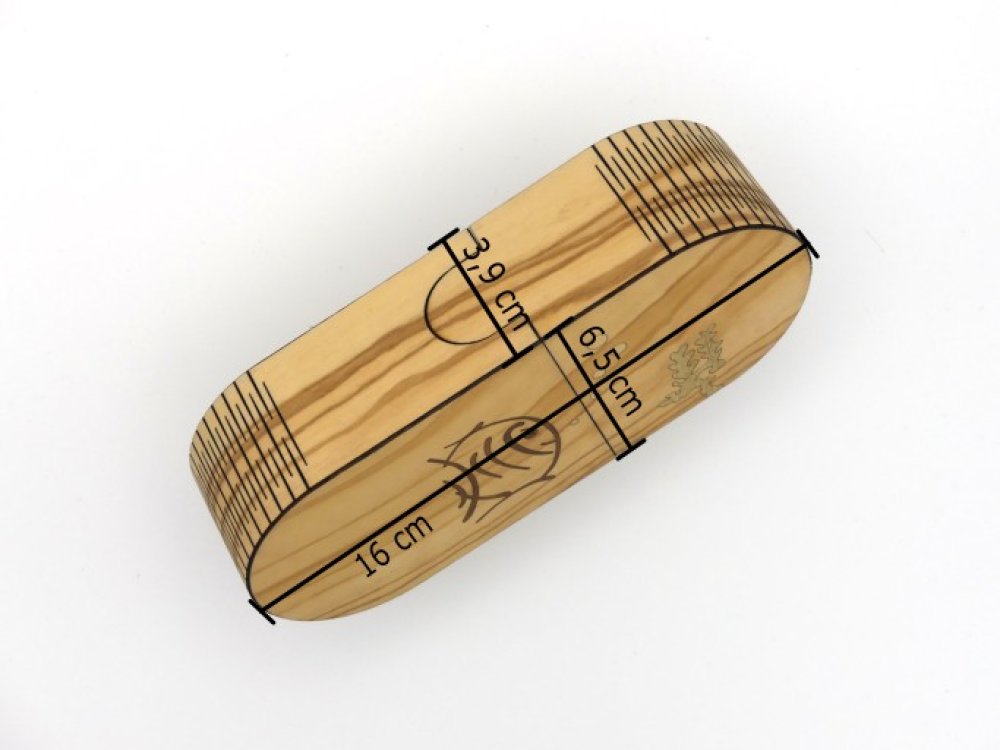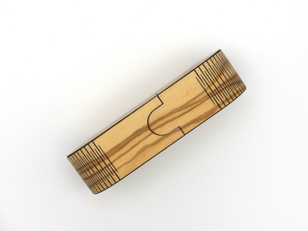 Ce magnifique étui à lunettes est réalisé en feuille de bois naturel, ici de l'olivier d'Italie. La face supérieure est ornée d'une marqueterie au motif "bubulle" stylisé. Elle est réalisée en combinant la découpe laser et les techniques traditionnelles de la marqueterie de bois. L'intérieur de l'étui est habillée d'une élégante feutrine noire. La structure est en contre-plaqué de hêtre pour assurer solidité et légèreté. La fermeture de l'étui est assurée par un fermoir magnétique incrustré et caché dans la structure du boitier.