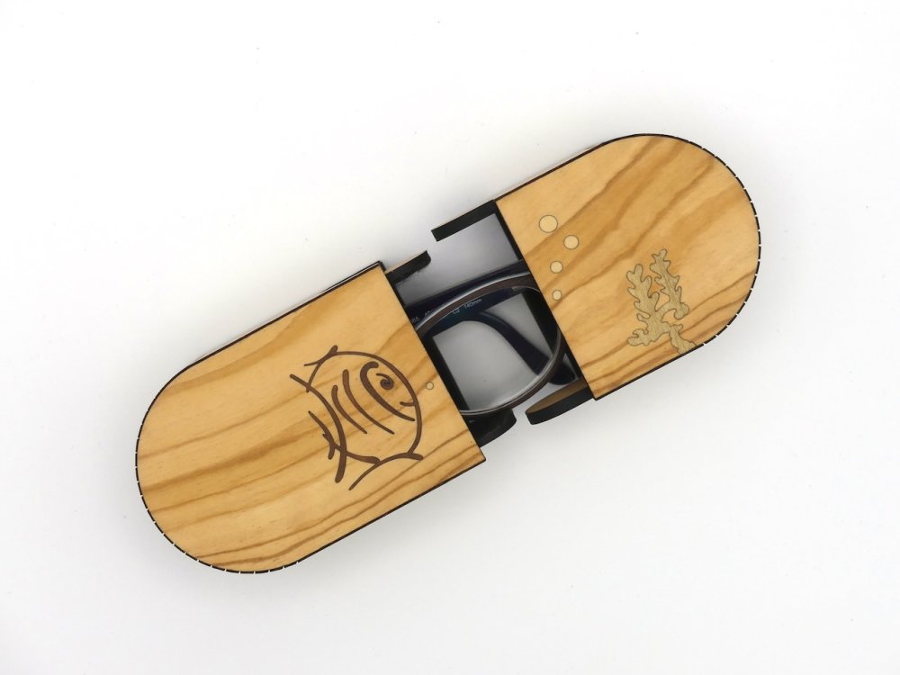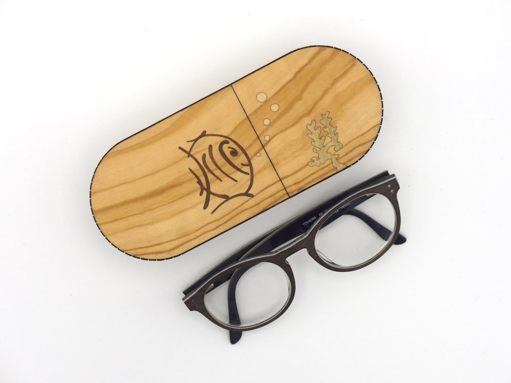 Etui à lunettes réalisé en marqueterie à la feuille de bois naturel