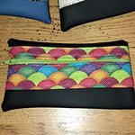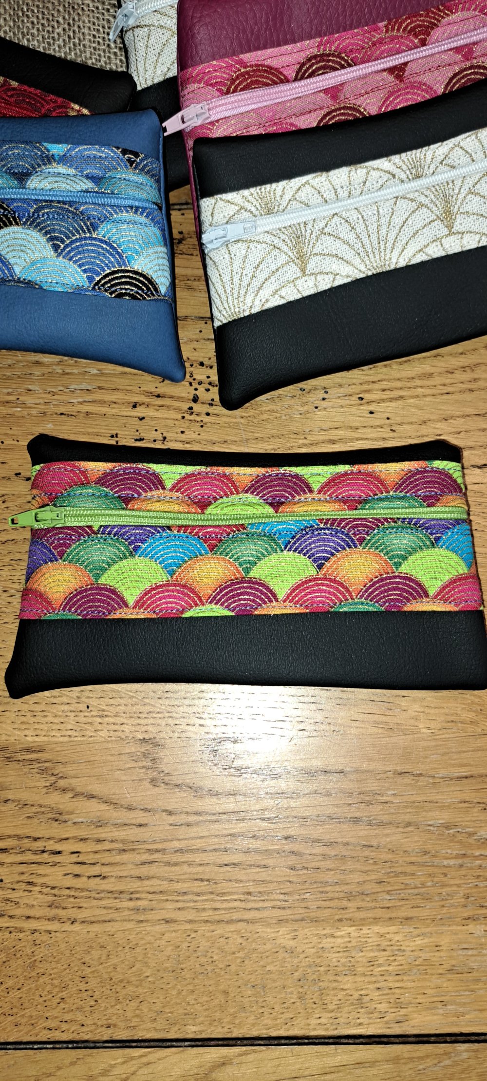 étui lunettes en similicuir noir et tissu multicolore or avec fermeture éclair