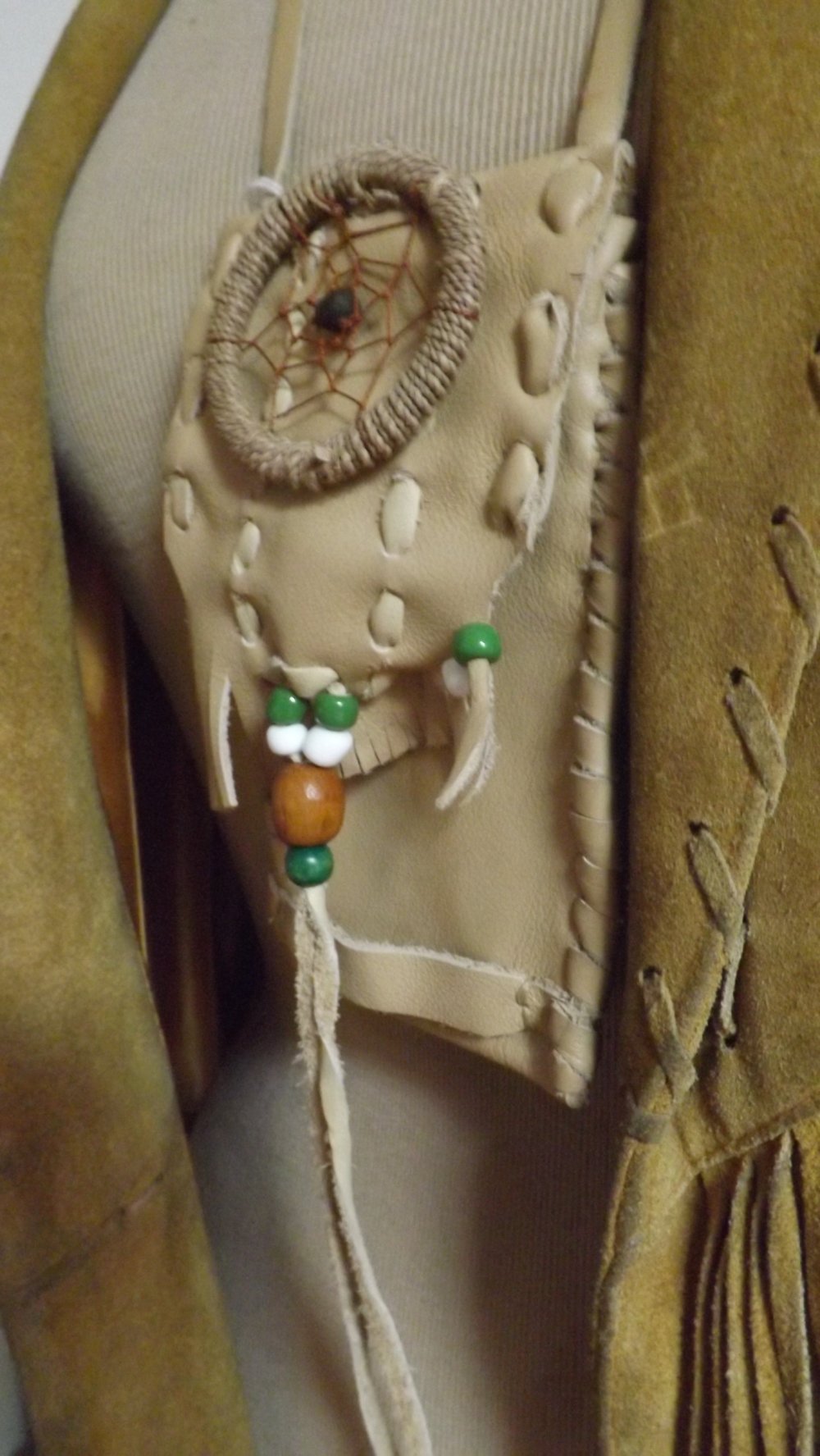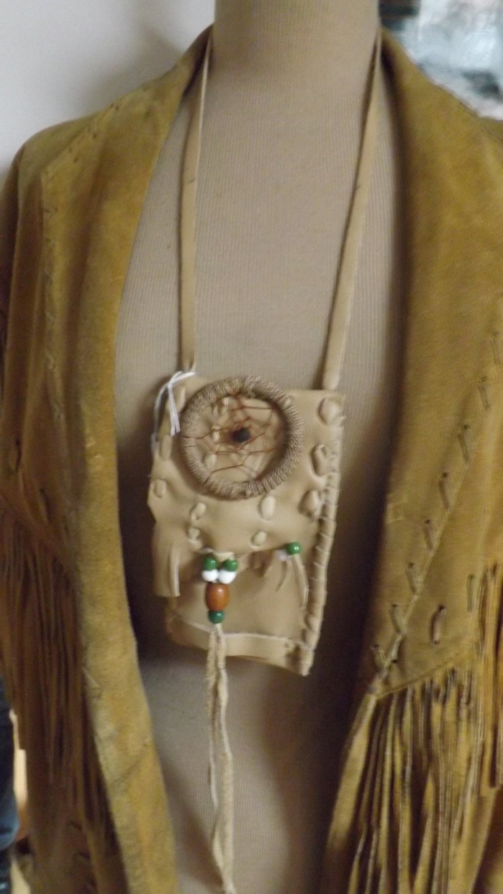 sac de souhait (voeux) cuir beige et attrape-rêves