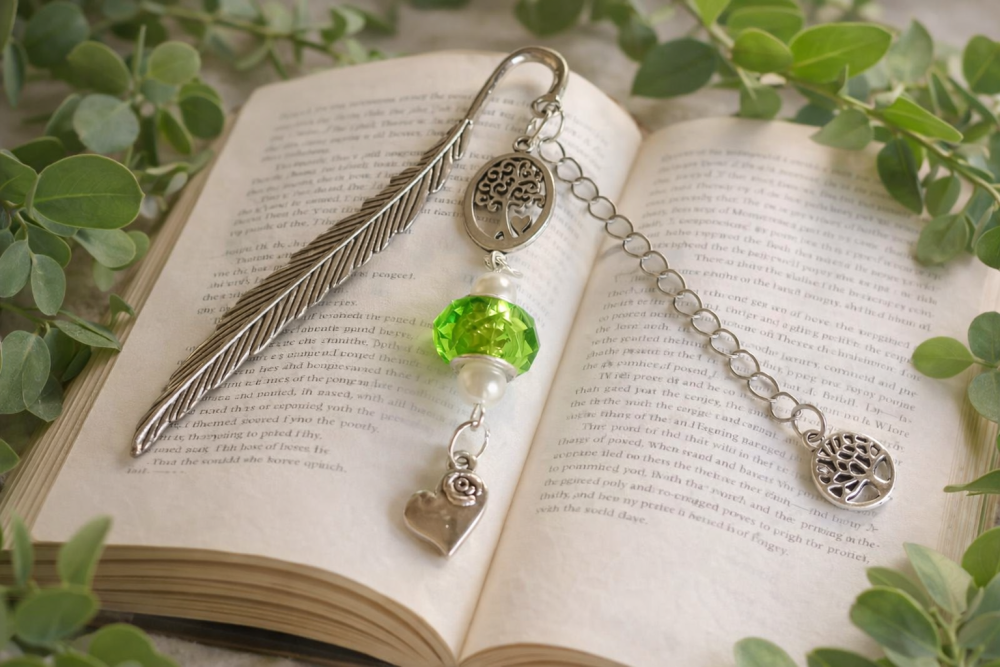 Des accessoires poétiques : Mes marque-pages plumes sont les compagnons parfaits de vos lectures, ornés de petites breloques et de perles étincelantes.