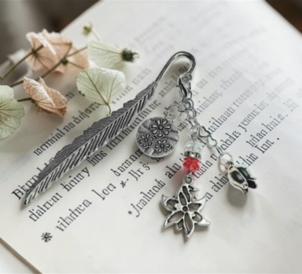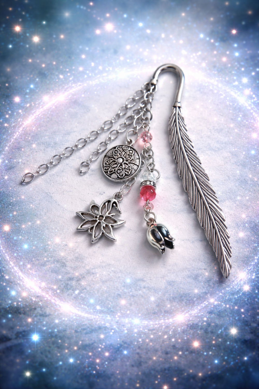 Des accessoires poétiques : Mes marque-pages plumes sont les compagnons parfaits de vos lectures, ornés de petites breloques et de perles étincelantes.