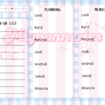 Idéal pour la vie de famille, ils se composent tous d'un encart to-do list pour inscrire tout ce que vous avez à faire dans la semaine, un encart planning pour noter vos rendez-vous et enfin un encart menus pour prévoir vos repas de la semaine.
