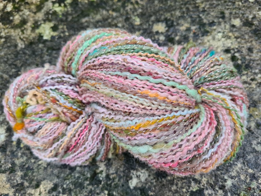 le filage de la laine, la teinture (sans métaux lourds et dans le respect de l'environnement) le feutre, le tissage, le tricot et crochet..... l'association des matières, des teintes, la recherche de l'harmonie parfaite.....