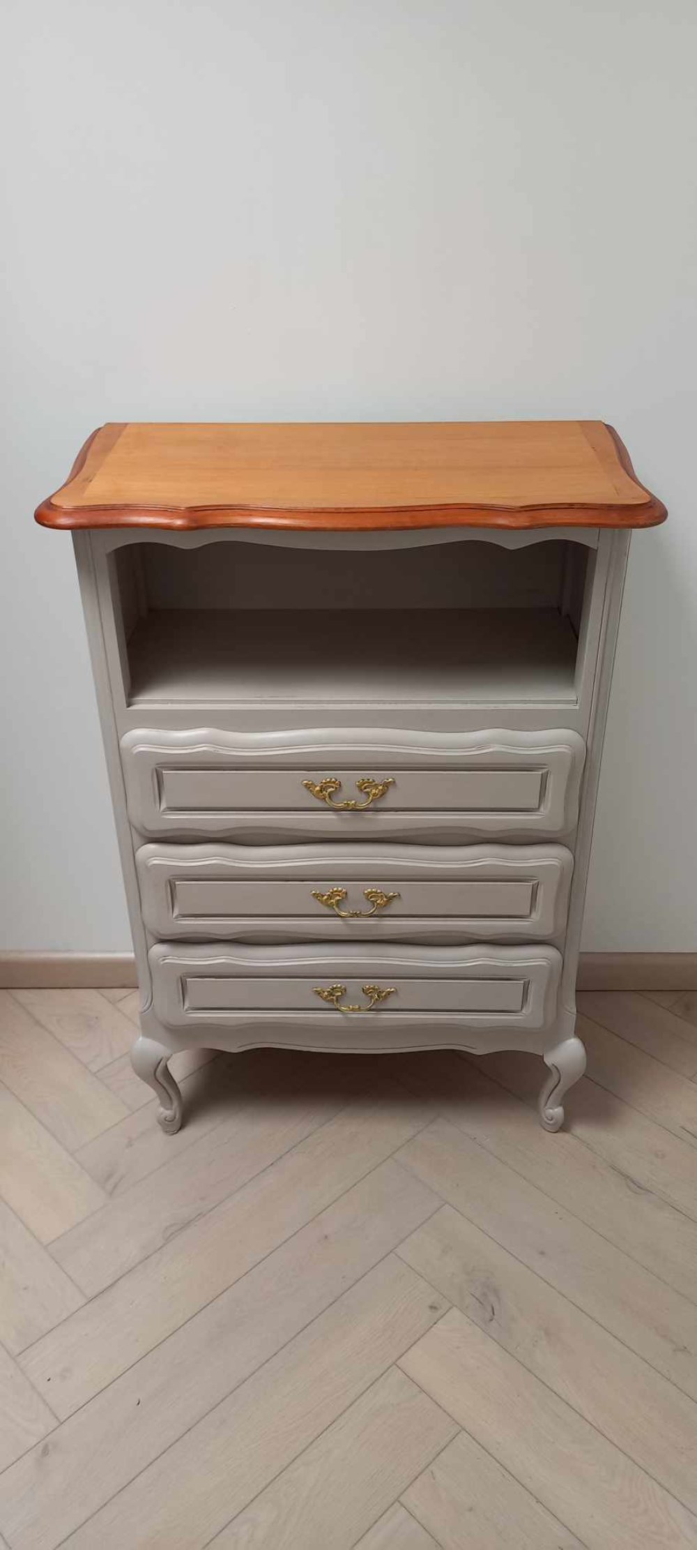 Je l'ai poncé et peint avec une peinture écologique de couleur beige. Enfin, je l'ai soigneusement protégé avec un vernis mat. Le plateau est en bois brut et est également recouvert d'un vernis mat.