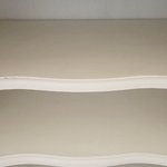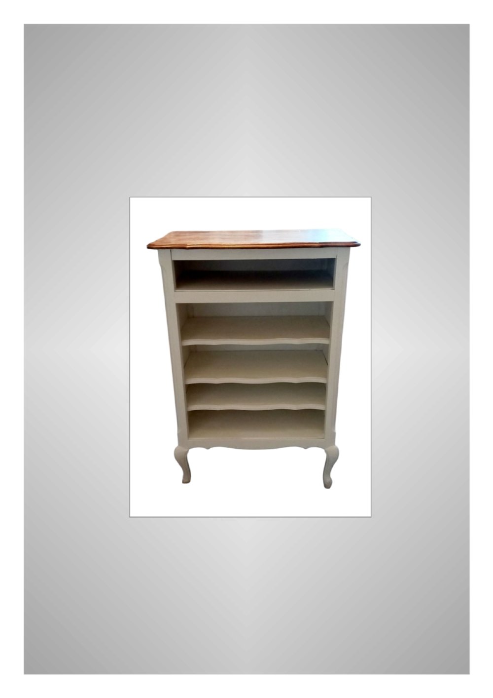Je l'ai poncé et peint avec une peinture écologique de couleur blanche. Voici ses dimensions: Hauteur: 106 cm. Plateau: 44x74 cm. Le plateau est en bois brut et le tout est protégé par un vernis incolore mat.