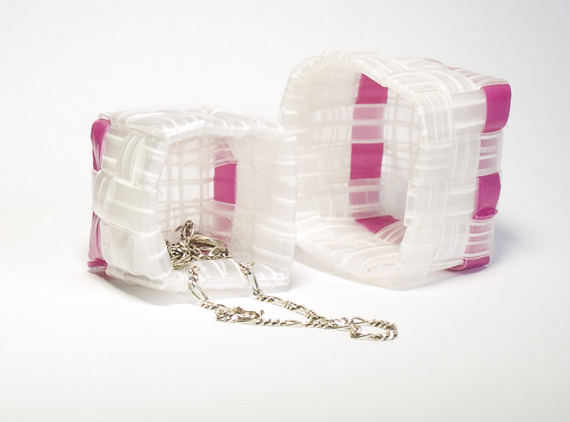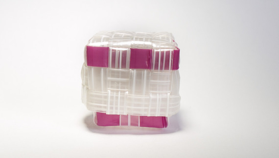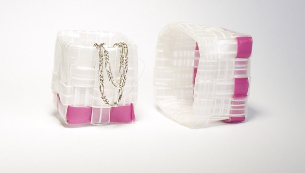 Tissage rose et transparent blanc (en pailles chalumeaux).