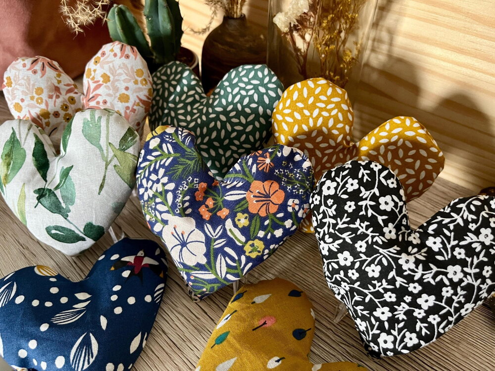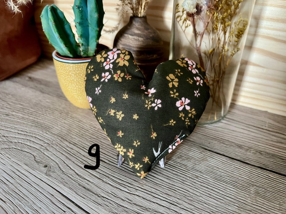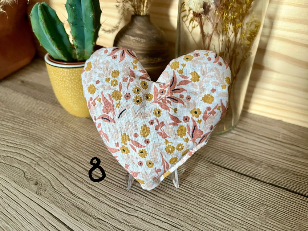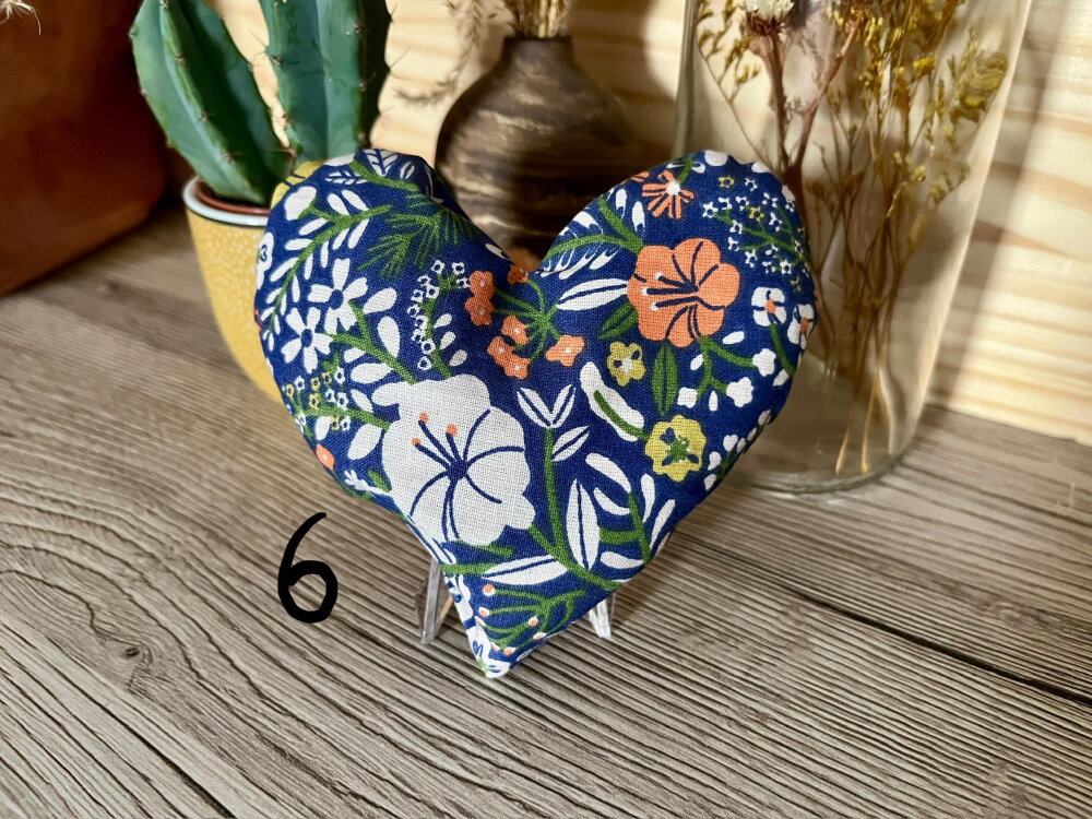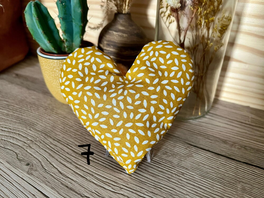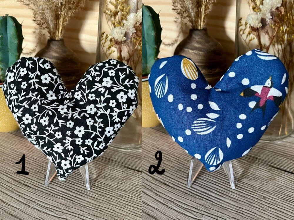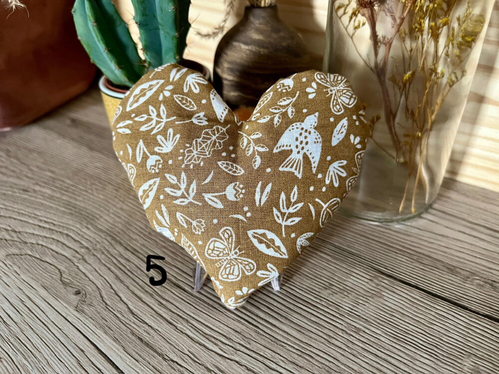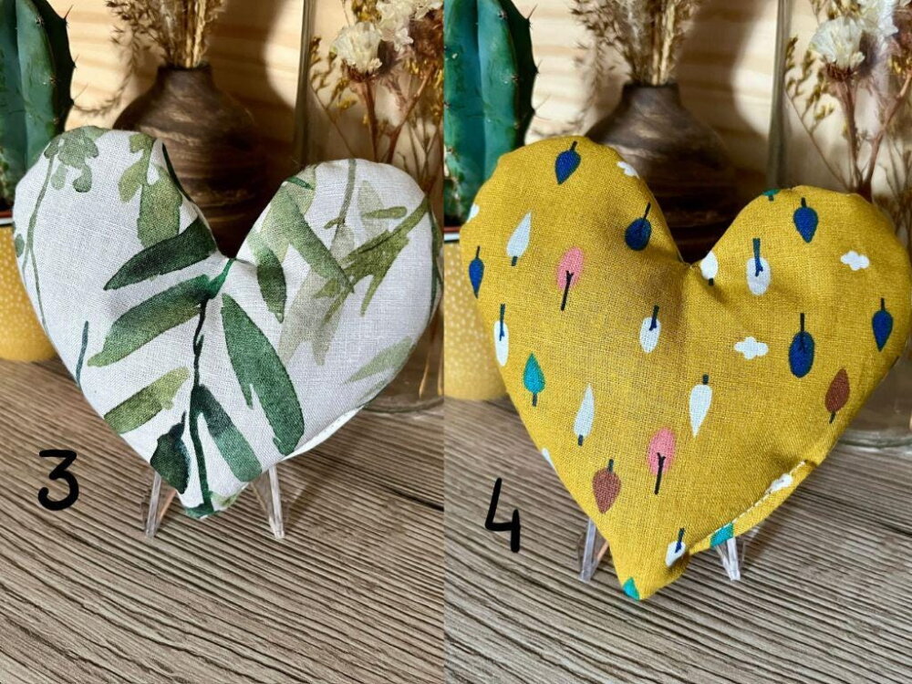 Mini bouillotte sèche, chaufferette de poche, compresse froide en tissu et graines de lin, forme coeur, faite main (à l’unité) - 10 coloris