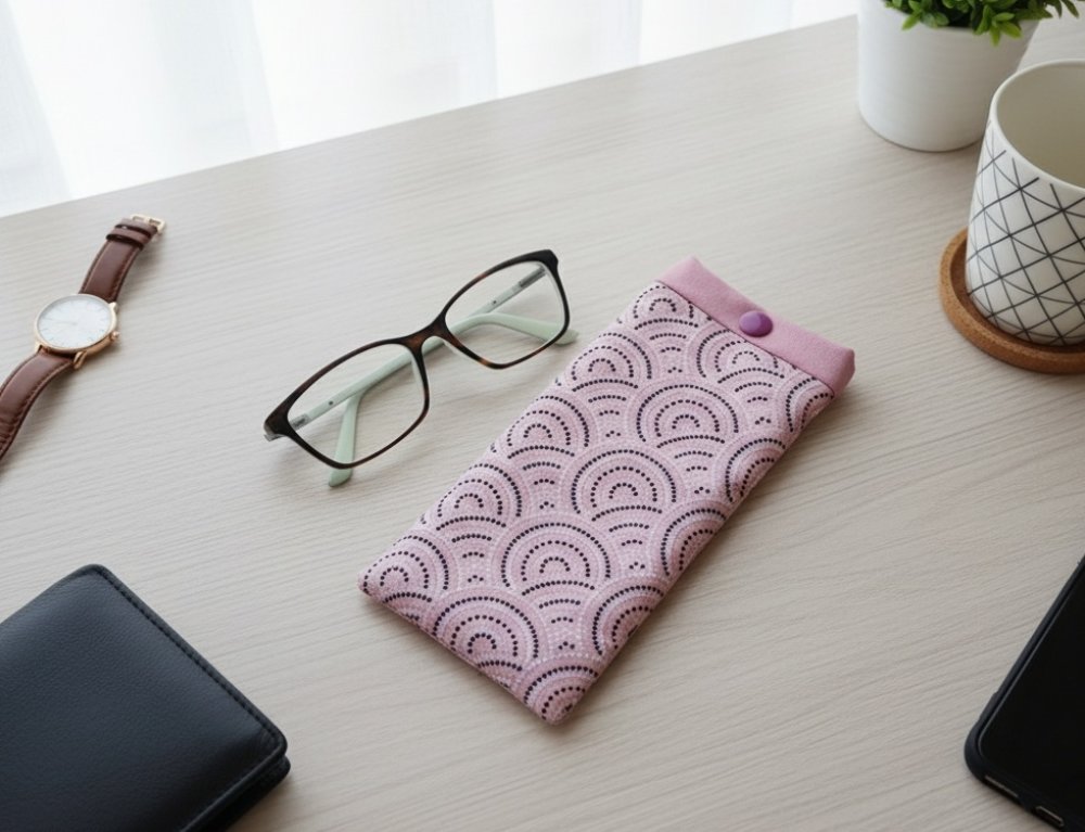 Cet étui à lunettes ou étui pour portable est confectionné avec un tissu principal en coton imprimé certifié Oeko-Tex, il est doublé avec un tissu coton uni et entre les deux un thermocollant de ouatine pour plus d'épaisseur afin de protéger votre portable ou lunettes, il se ferme grâce à un bouton pression qui n'est pas en contact avec vos lunettes ou votre portable