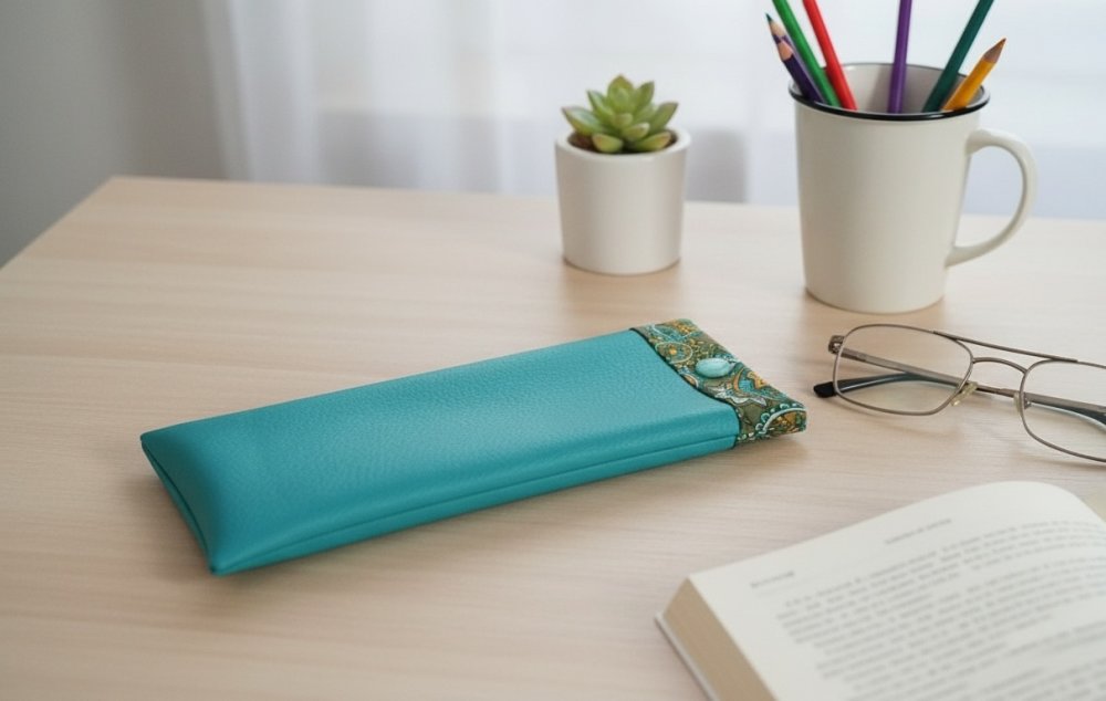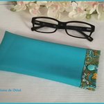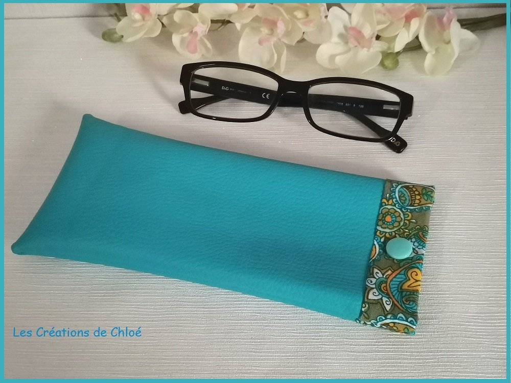 Étui pour lunette simili cuir turquoise et doublé en tissus coton certifié Oeko-Tex imprimé
