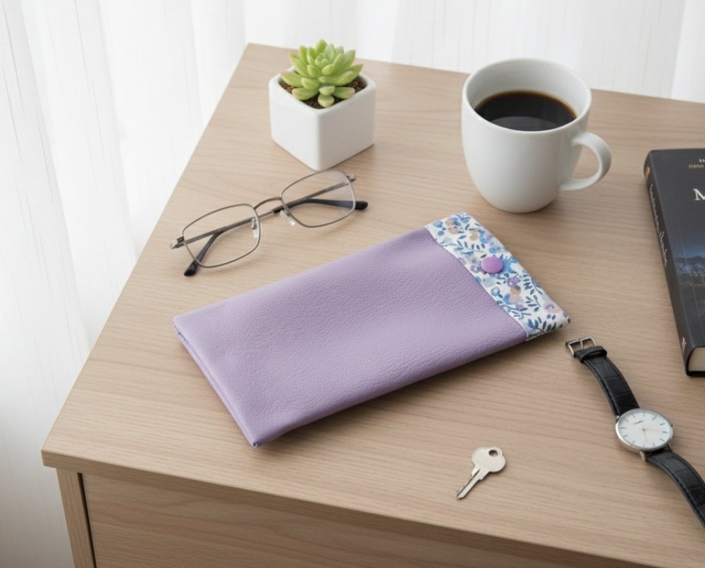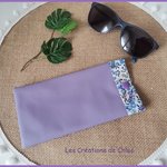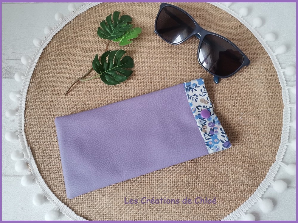 Etui à lunette en simili cuir mauve et tissus motifs fleurs
