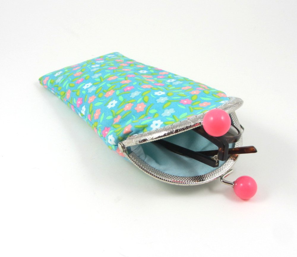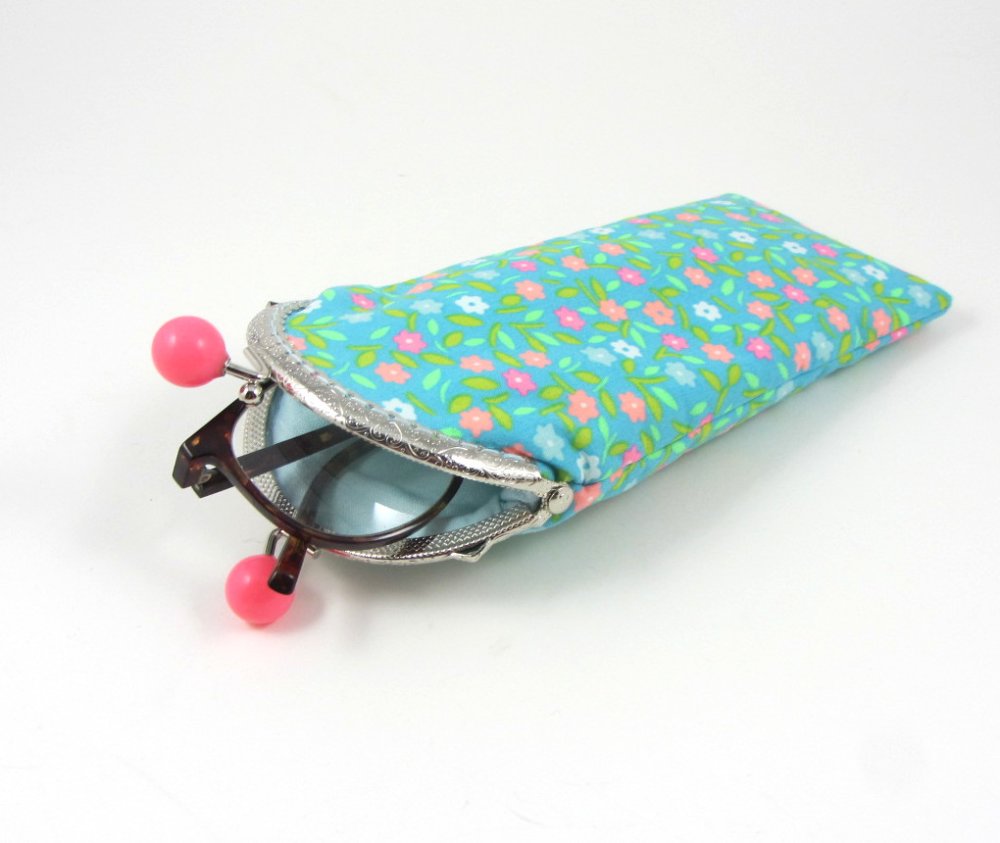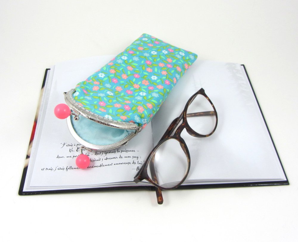 Étui à lunette en coton fleuri , doublé et doté d'un rembourrage en molleton entre les deux tissu pour plus de protection.