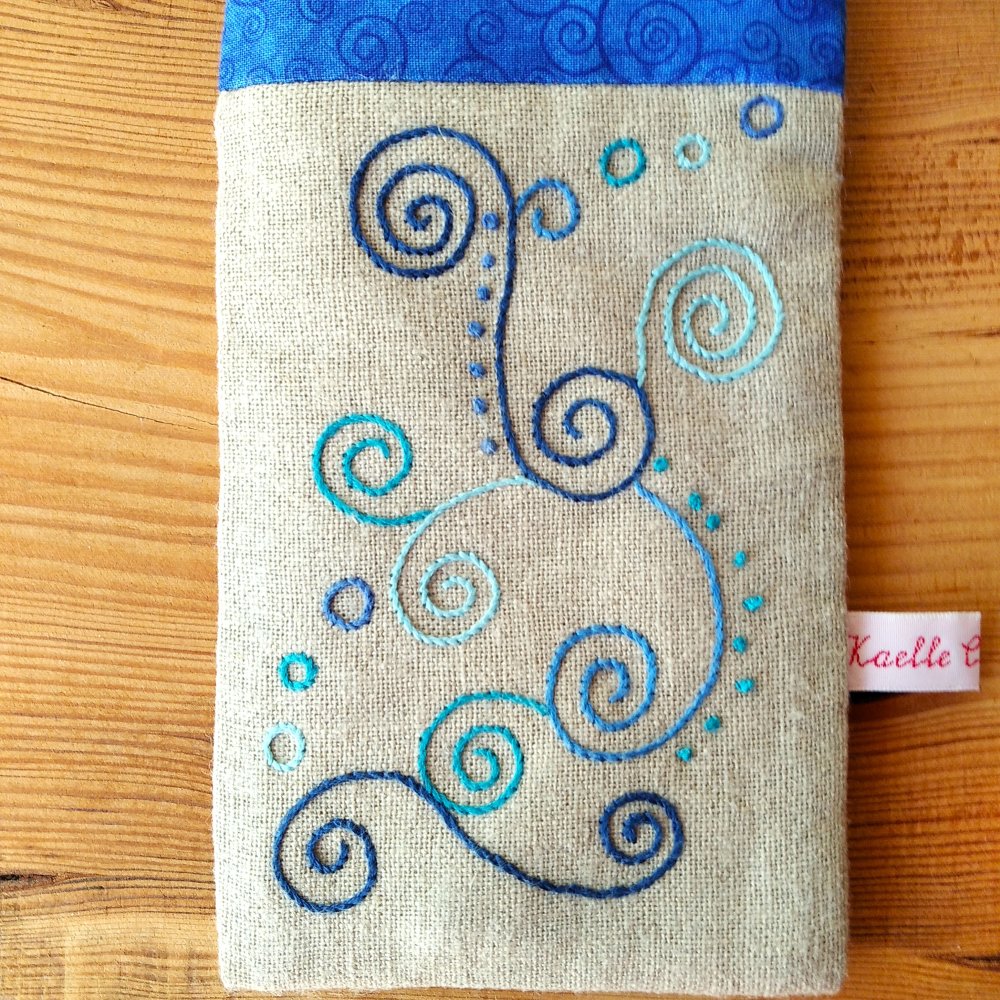 J'ai brodé tout un enchainement d'arabesques, de cercles et de points dans un camaïeu de bleu.