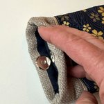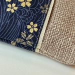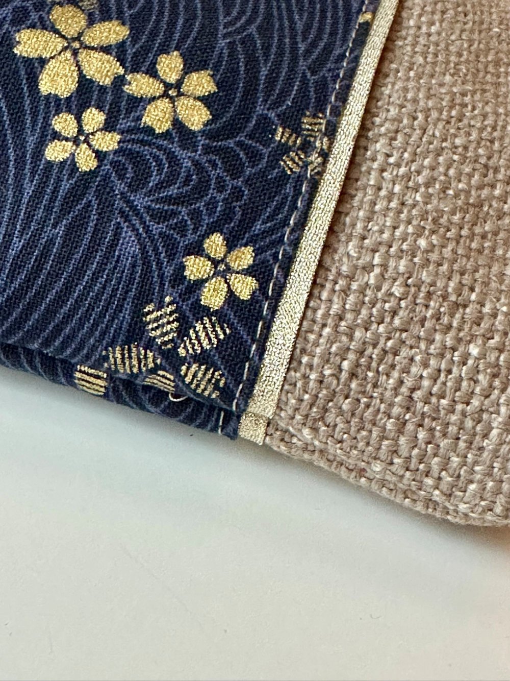 Réalisé ici dans un lin beige, et décoré sur les deux faces d'un véritable tissu japonais Sakura, à fleurs de cerisier dorées, et avec son fin liseré doré.(sur les 2 faces)