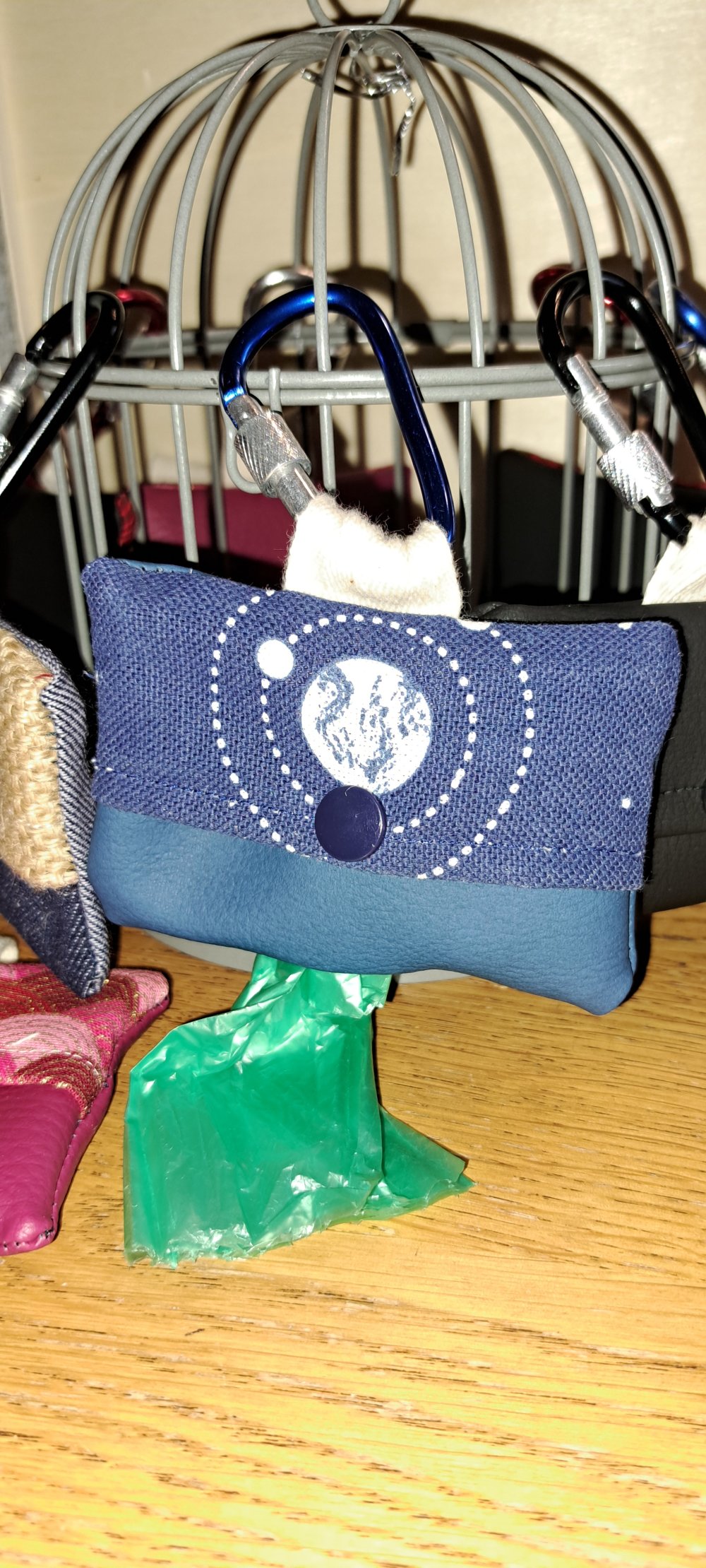 petite pochette pour vos rouleaux de sacs à déjection pour la promenade avec votre chien (ouverture sous le dessous)