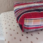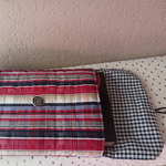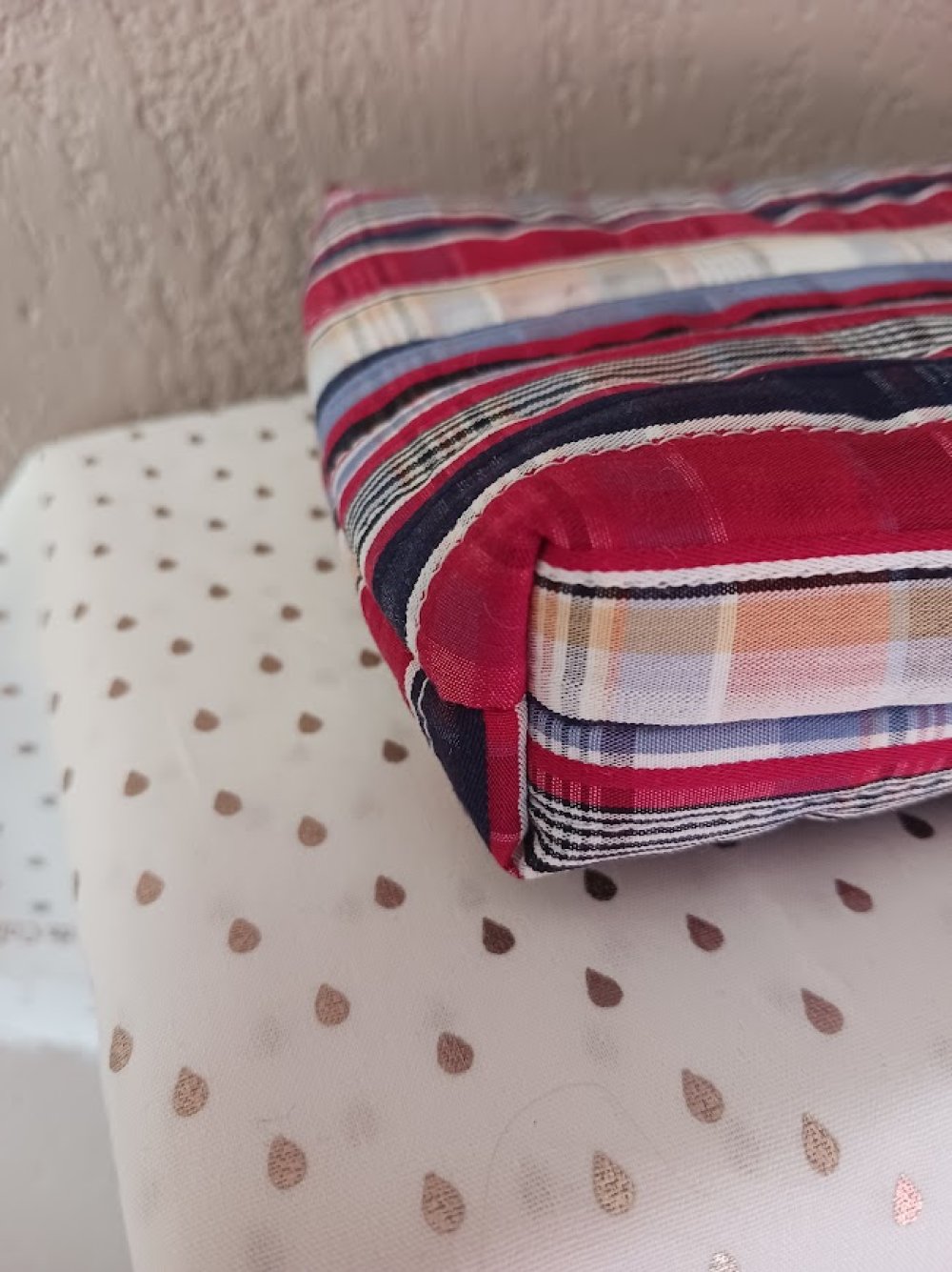 en popeline de coton fantaisie, matelassé bande droite fait main doublé en coton vichy marine et blanc