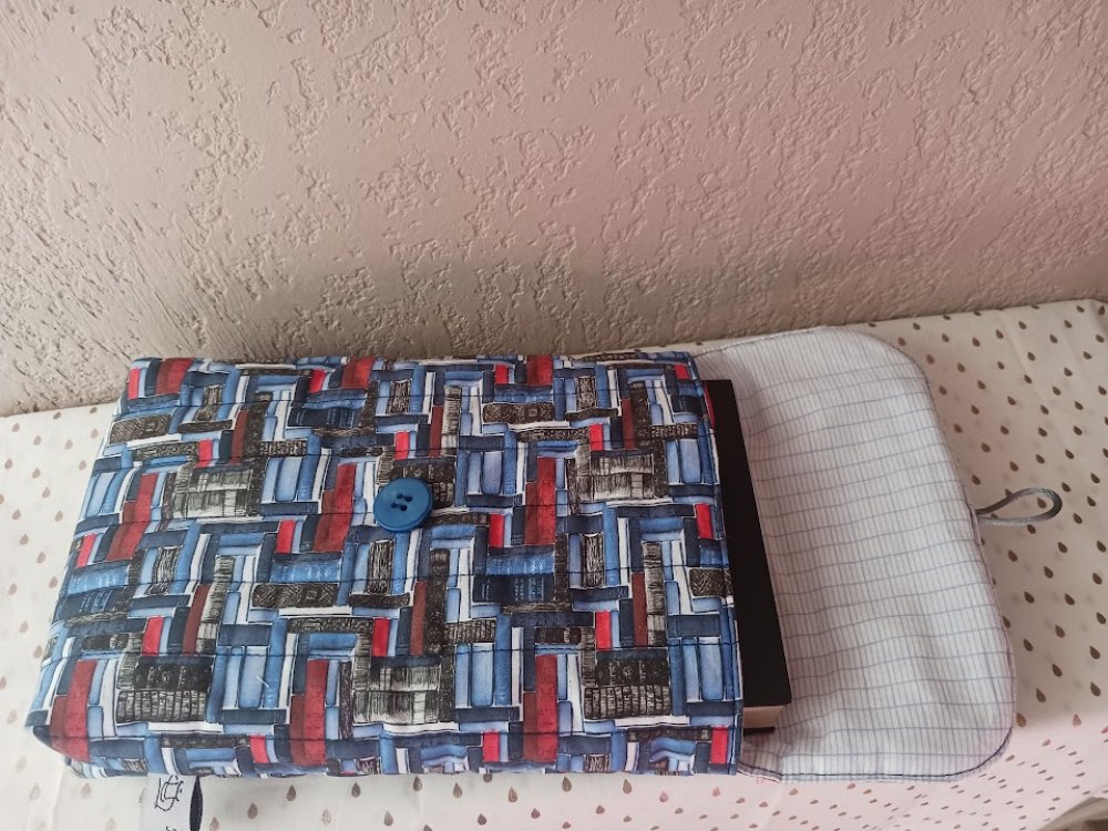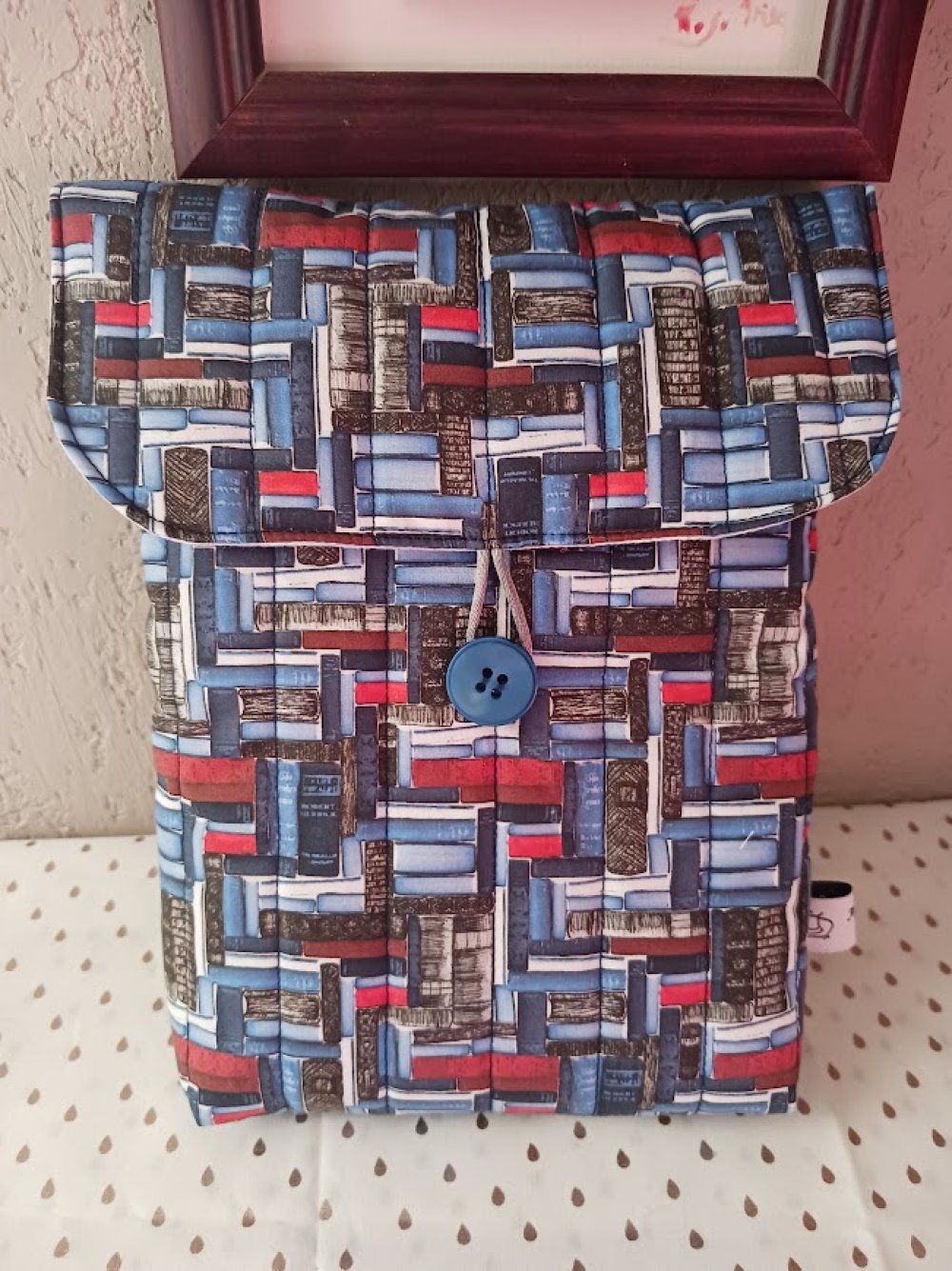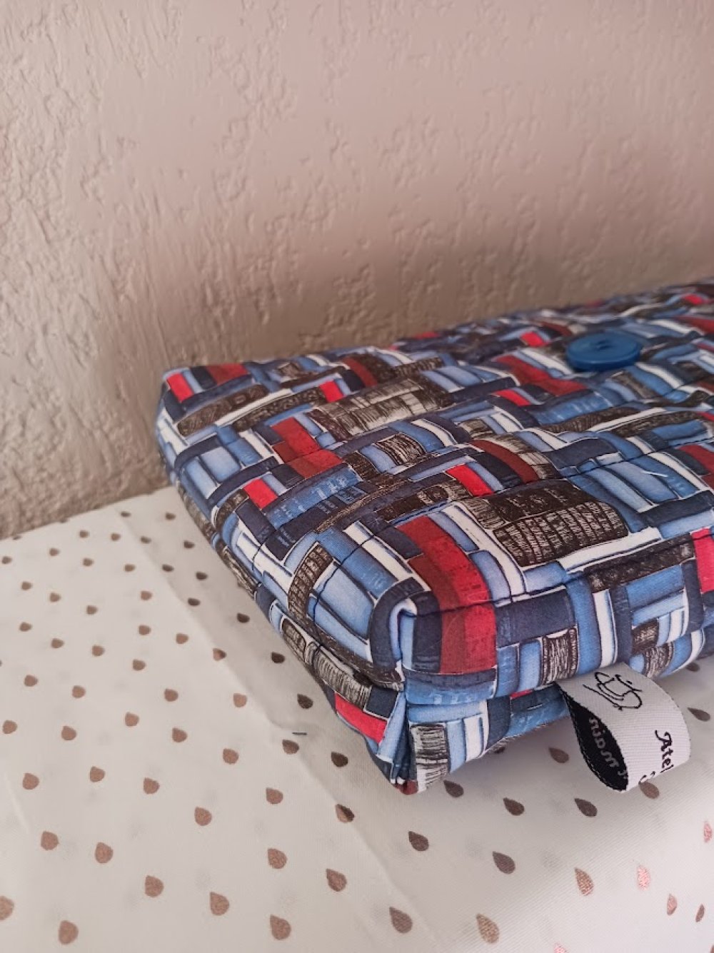 Protège livre a rabat " livres" en coton ouatiné matelassé bande droite fait main et doublé en coton cahier 24.5 cm X19 cm FAIT MAIN