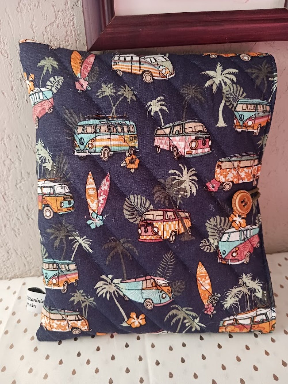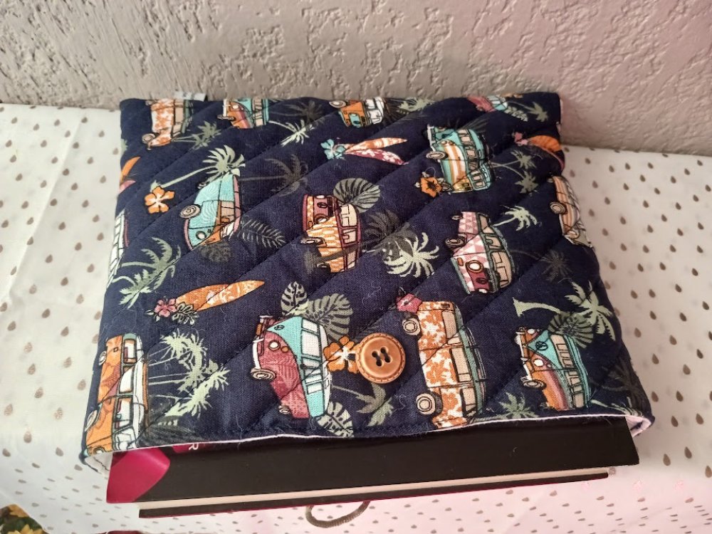 Protége livre ou poche à livre " cars " matelassé bande diagonale fait main avec bouton sur le côté