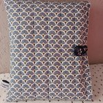 Protège livre " éventails" en coton ouatiné matelassé bande droite fait main et doublé en coton blanc 23 cm X18.5cm FAIT MAIN