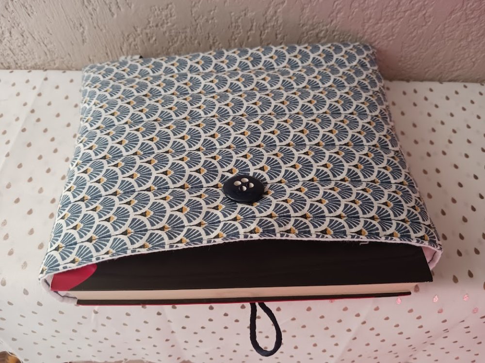 Protége livre ou poche à livre " éventails " matelassé bande droite fait main avec bouton sur le côté