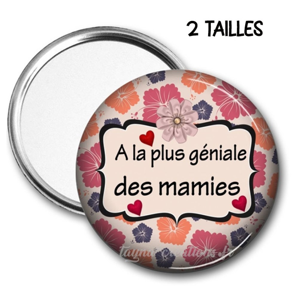 Miroir double face : 1 face miroir + 1 face décorée avec l'inscription "Mamie formidable"