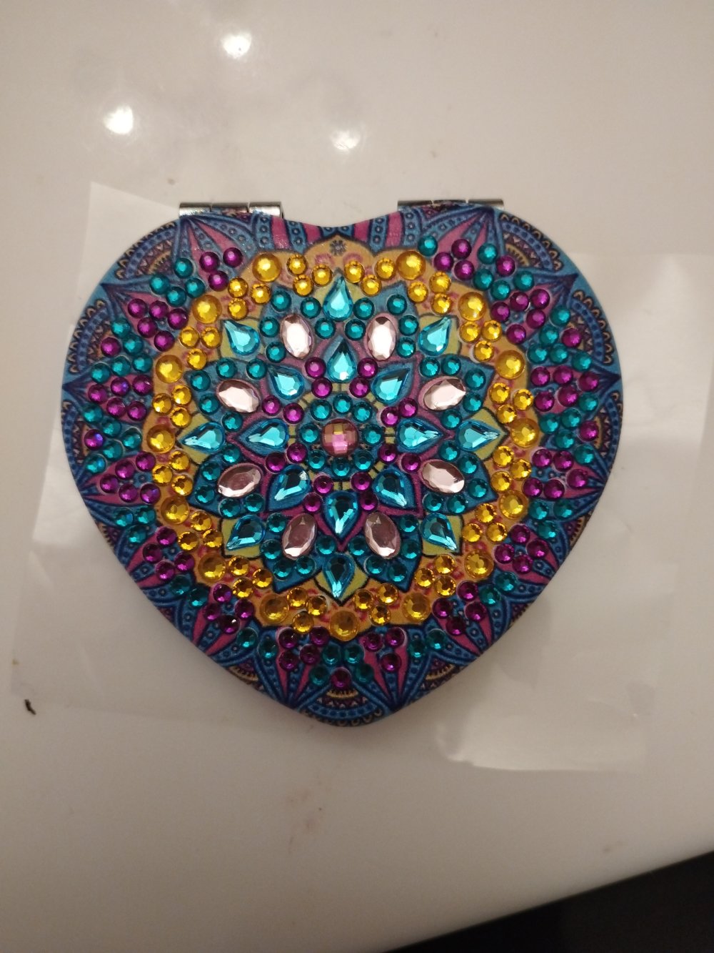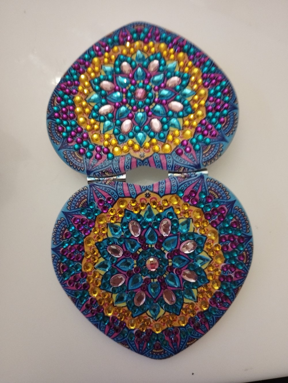 Miroir de poche en forme de cœur pliable en similicuir et en diamond painting