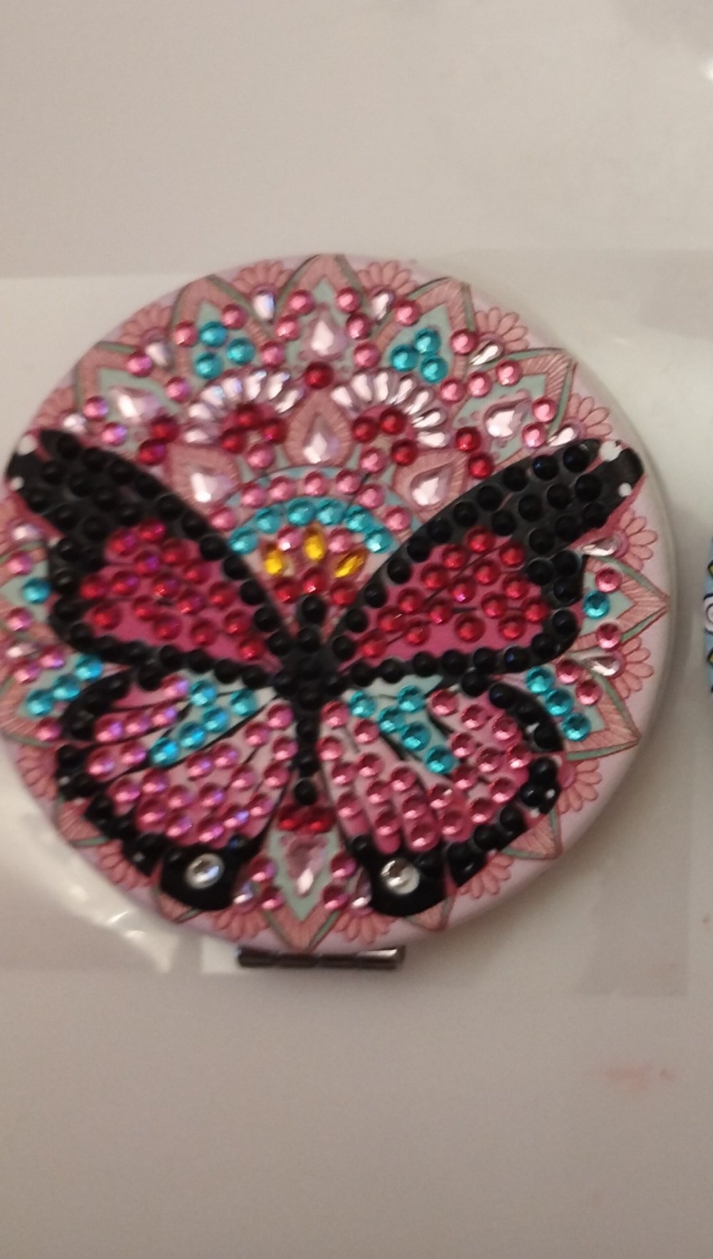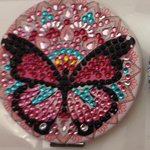 Miroir de poche dessin papillon en simili cuir et en diamond painting
