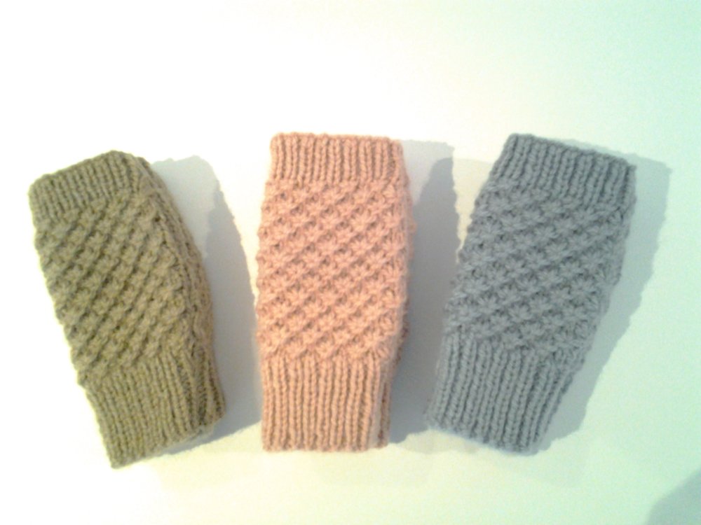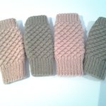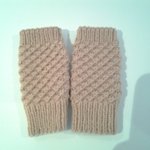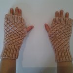 ,point fantaisie dit point croisé, ce qui fait tout le charme de ses mitaines en laine acrylique de couleur bois de rose , facile d'entretien