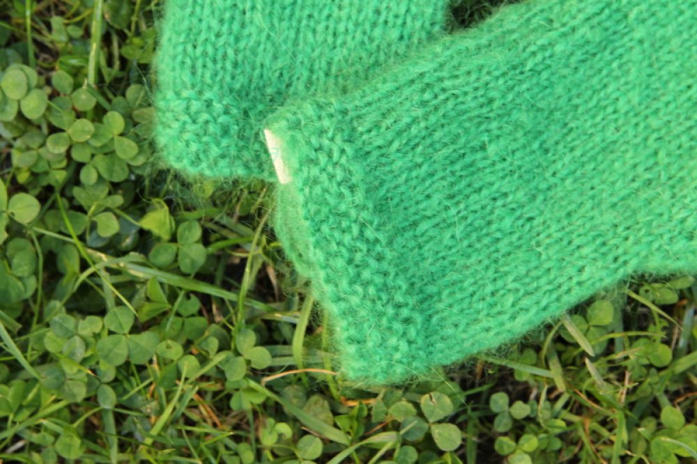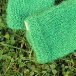 Ces mitaines sont tricotées à la main dans un fil mohair léger, doux et chaud.