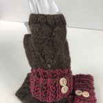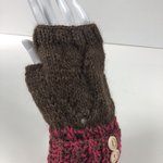 Mitaines avec pouce Laine Tricoté Main Réf 5311 Qualité Acrylique/Alpaga Couleur Marron et Chiné Marron/Rose Taille M Modèle Unique